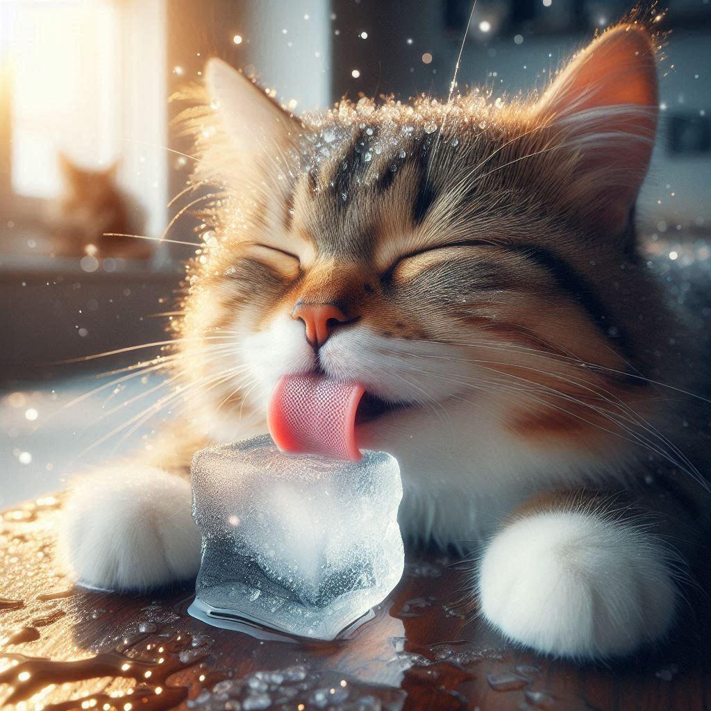 氷の味を覚えた猫