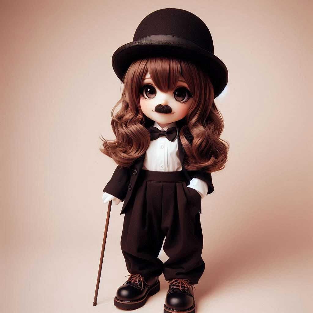 チャップリンのコスプレをしている萌ちゃん。