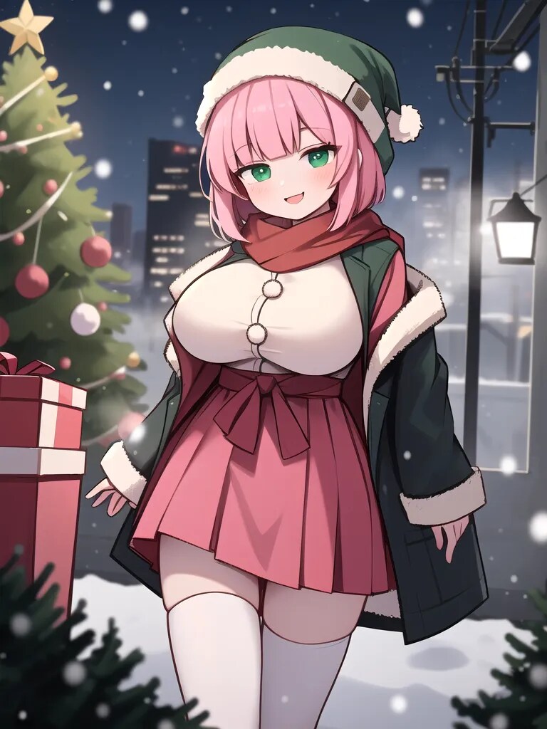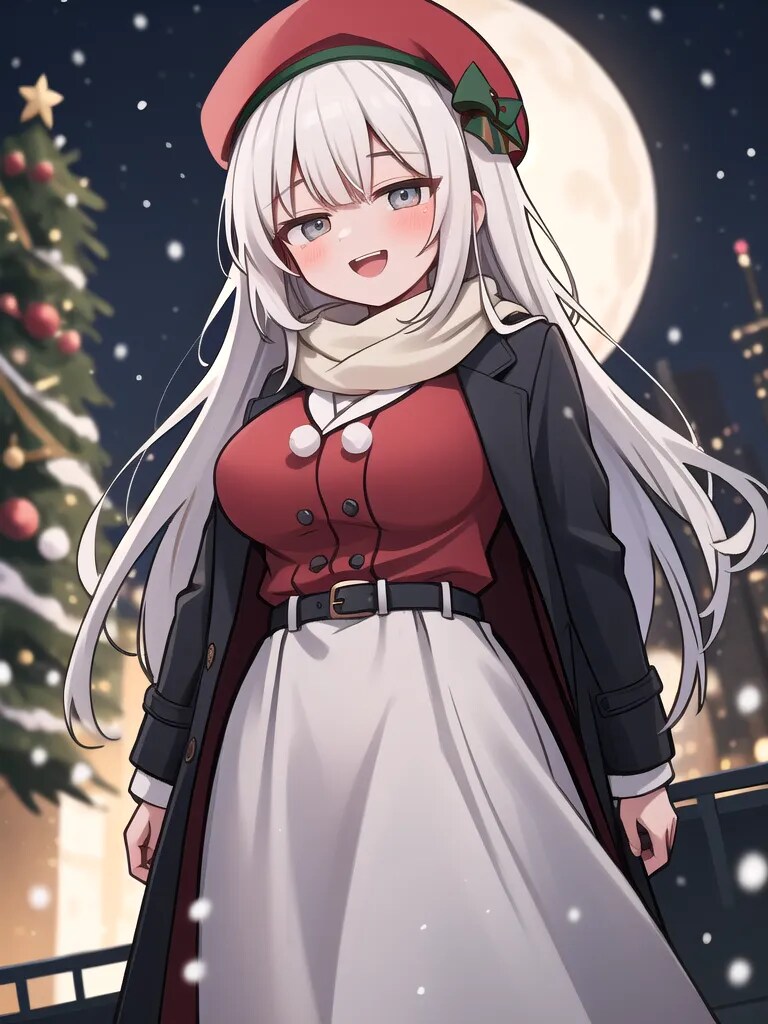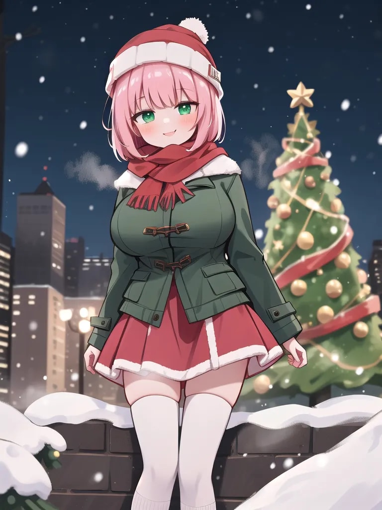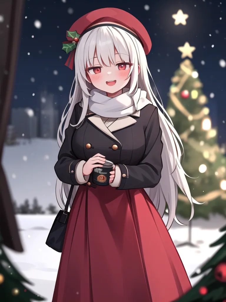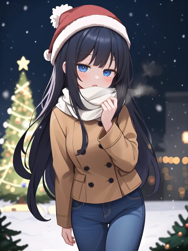 雪が降ってきて寒そうですが、きれいなイルミネーションを見れて楽しそうです。