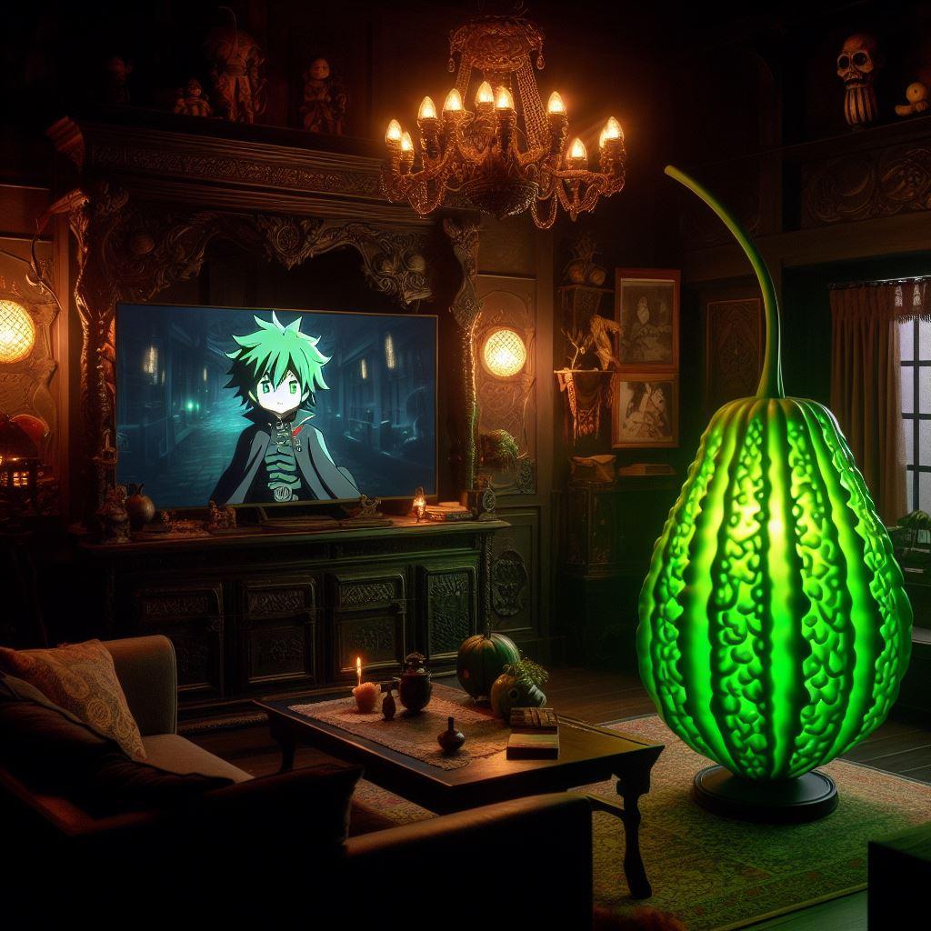 ランプシェードはゴーヤの皮です。
