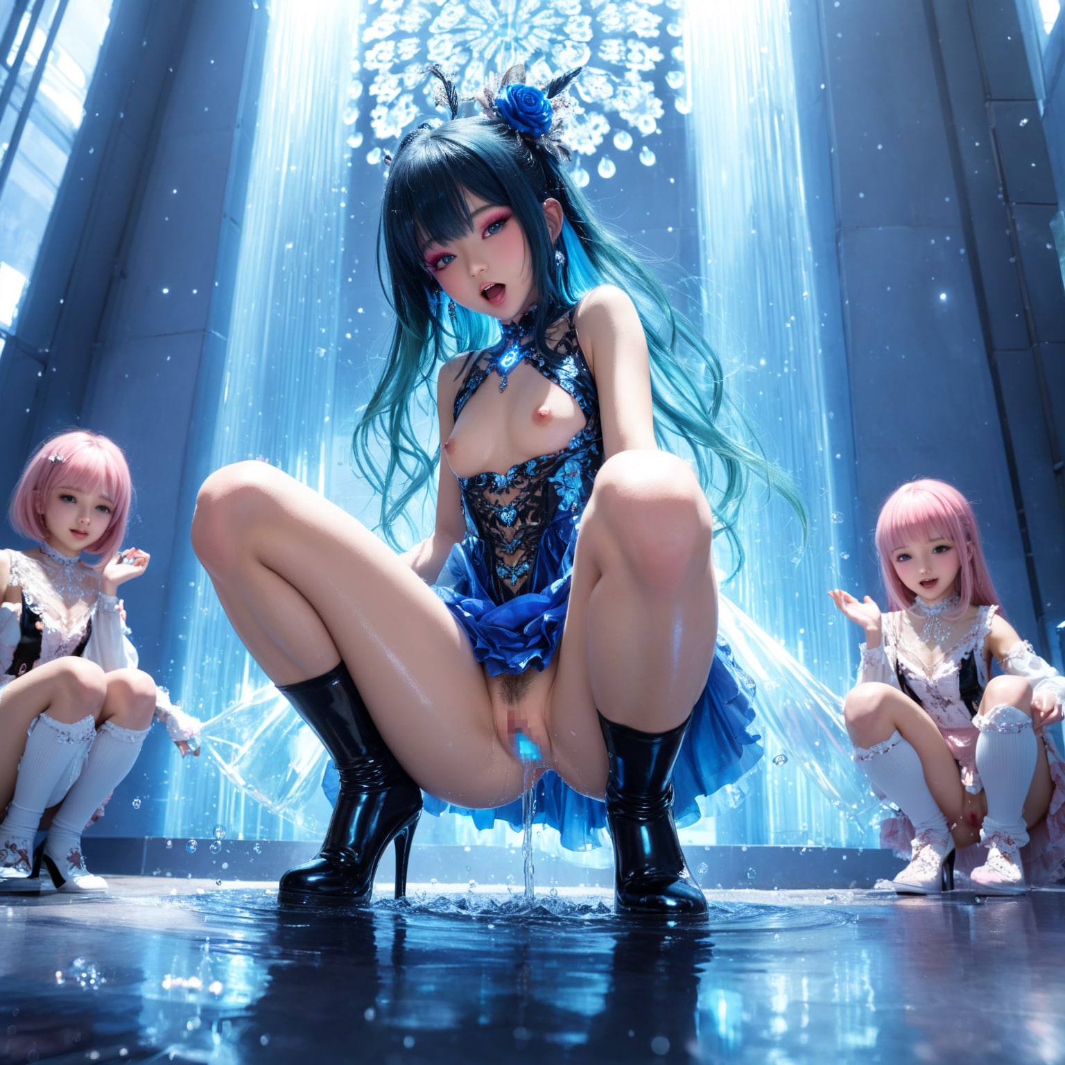 ミルク風呂で射精する巨根ふたなりちゃんたち