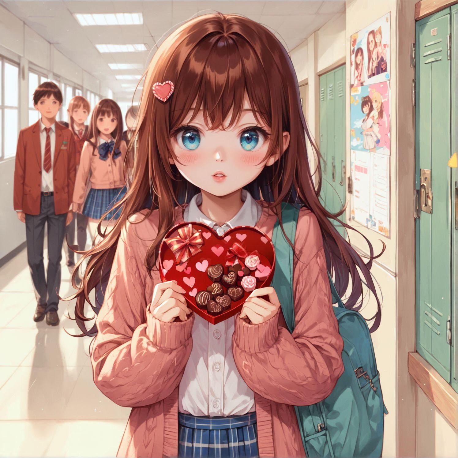 バレンタインデーで勇気を出してチョコを渡そうとしている子