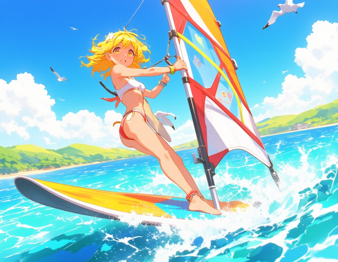 2023/08/08「夏休み、ウインドサーフィンを楽しむ少女」のFLUX版のリファイン