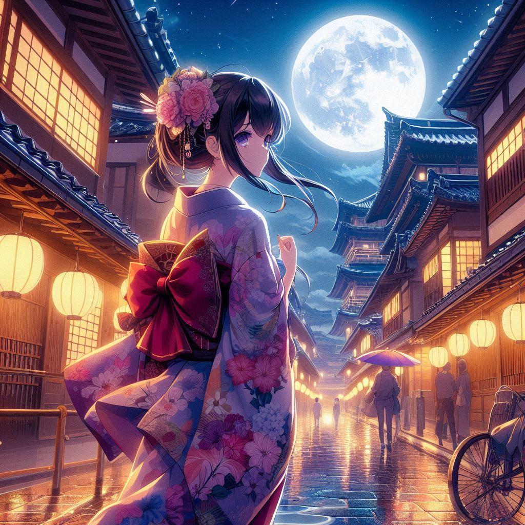 「せわしなく 行き交う花街を 月照らす」