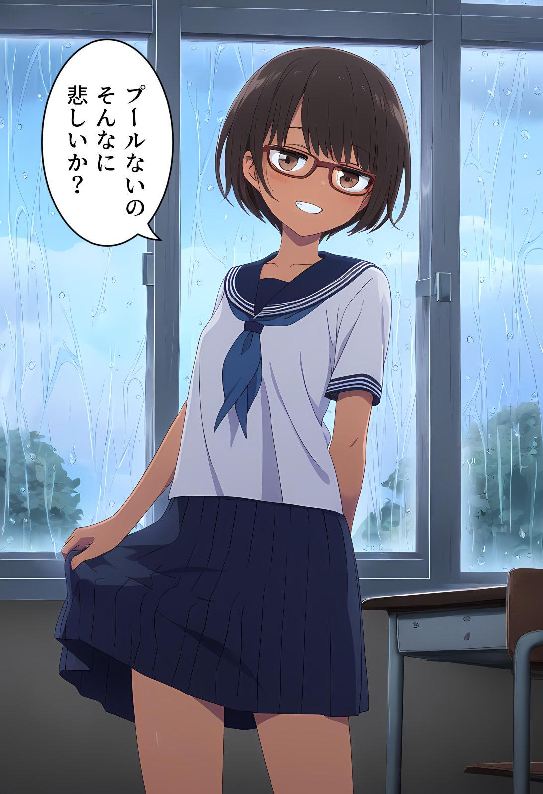 プールが中止でも取っておきの水着を見せてくれる同級生ちゃんです