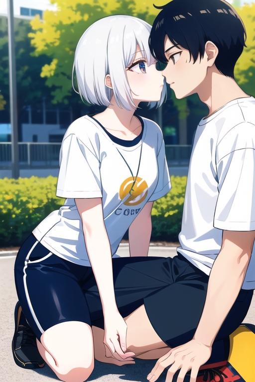 jacket partially removed, heart in eye, burnt clothes, holding fishing rod, kanji, doujin cover, pentagram, tape gag, adjusting headwear, red socks, friends, cloud print, coke-bottle glasses, oral invitation, competition school swimsuit, barbell piercing, gradient legwear, prisoner, blood on breasts, wind chime, carrying over shoulder, tape measure, flaming weapon