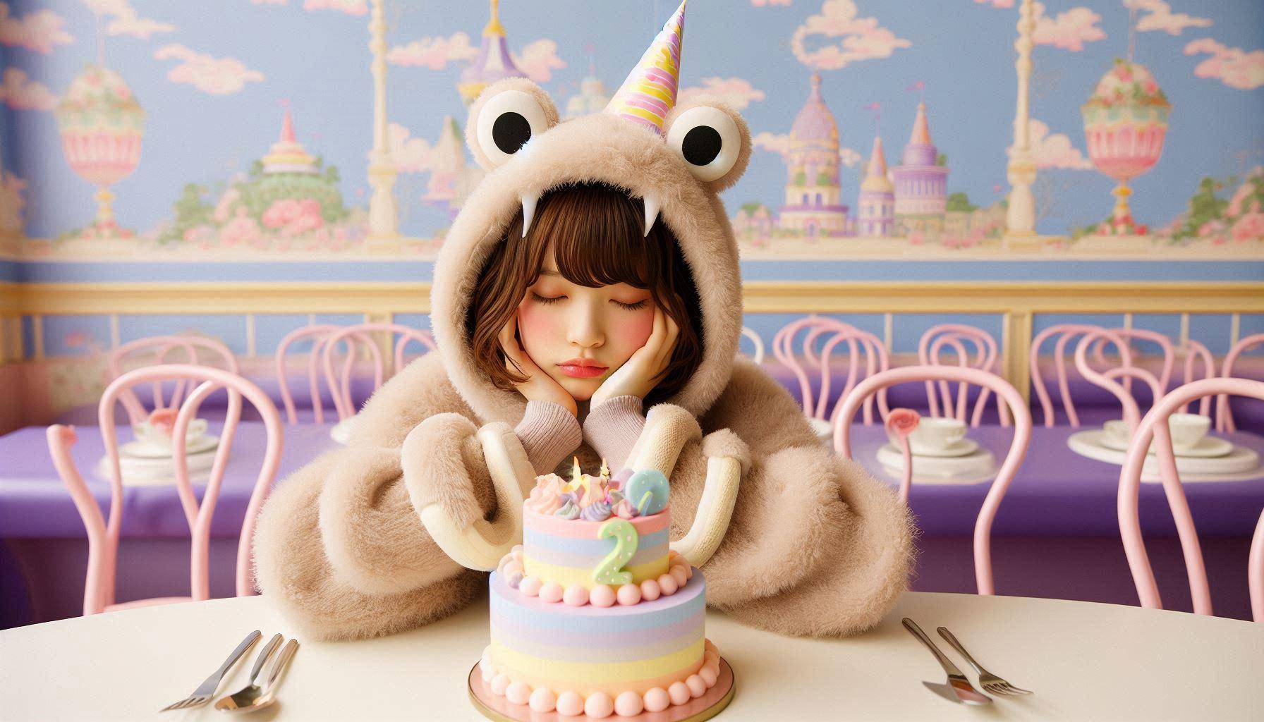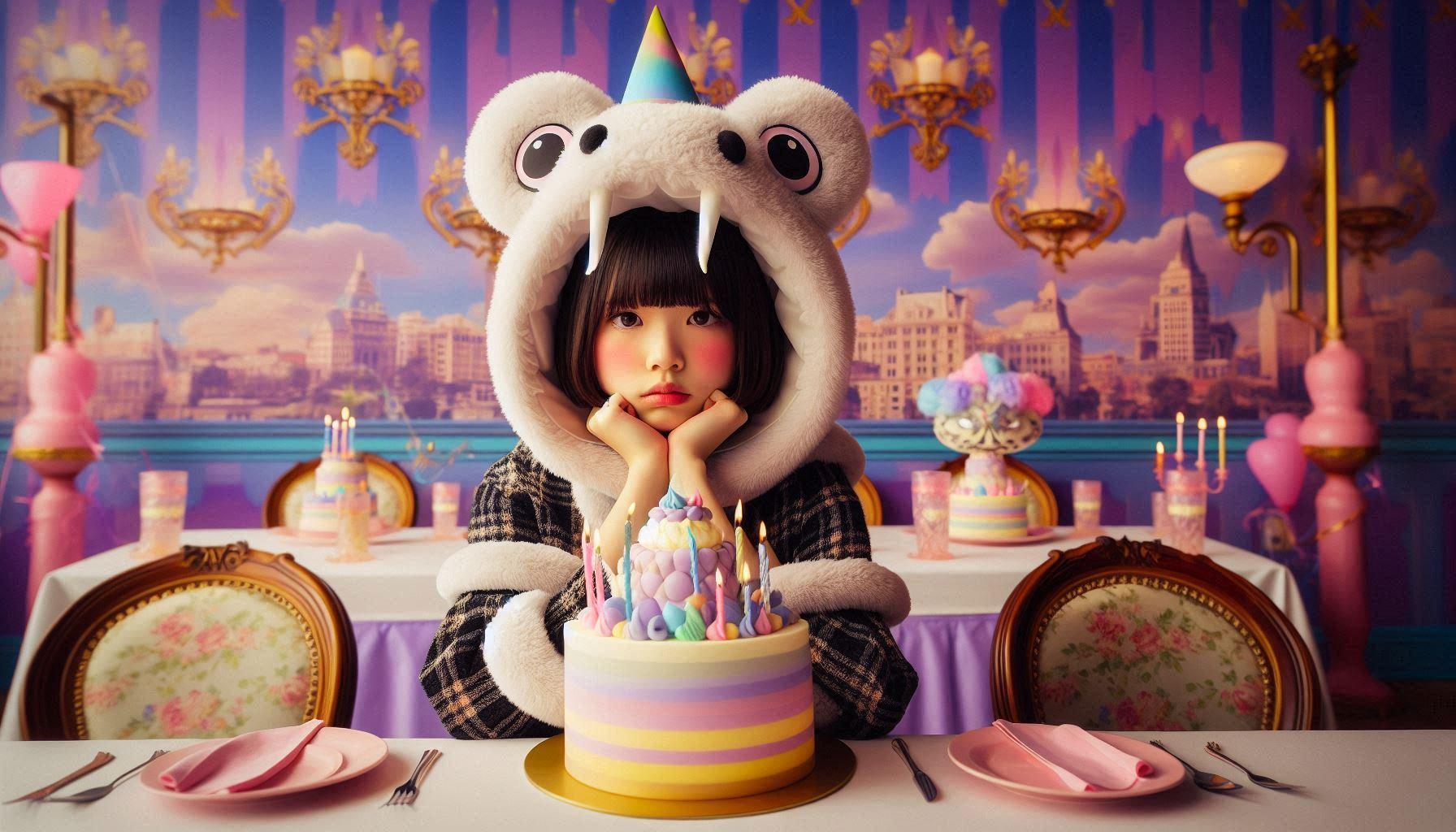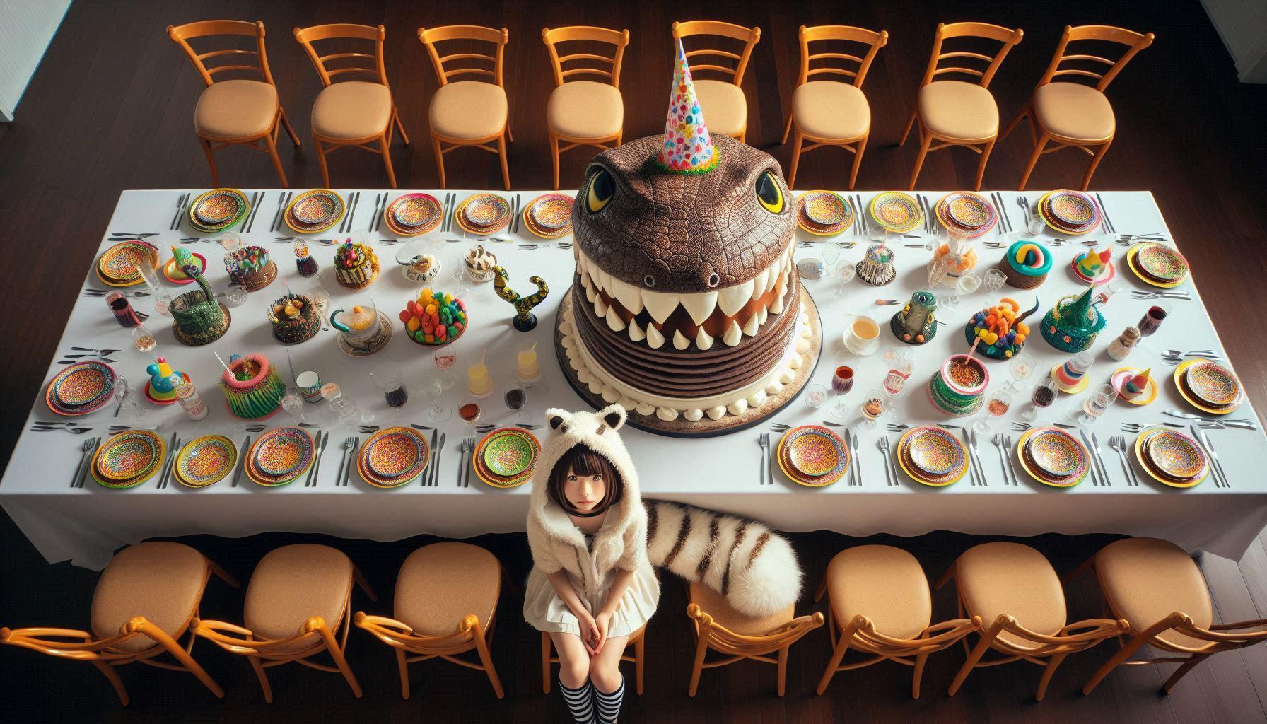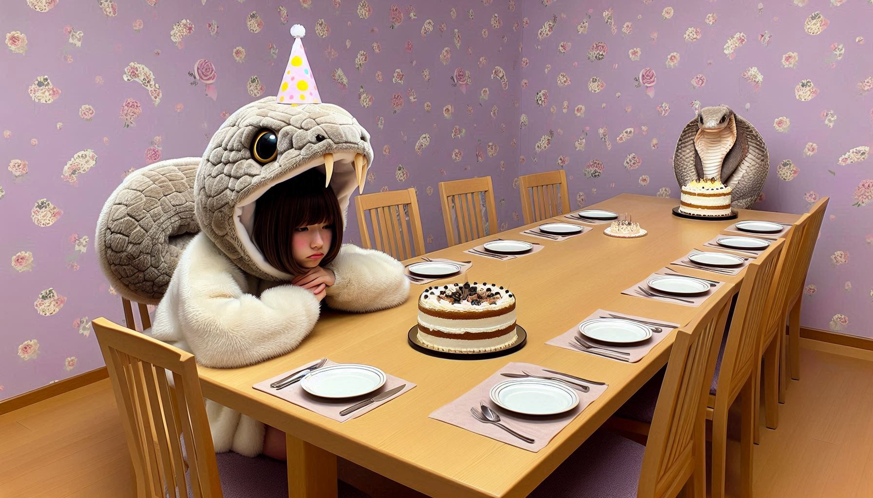 なぜか誕生日だと勘違いしてパーティーの準備をしていたウチノコ。午前0時きっかりに席につきます。
