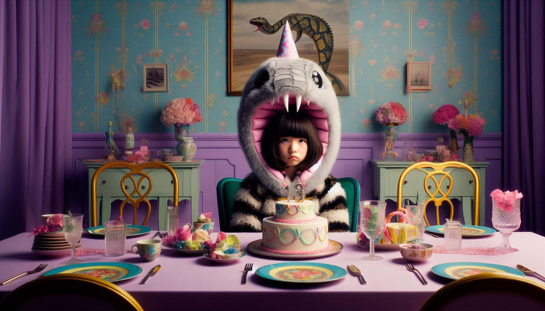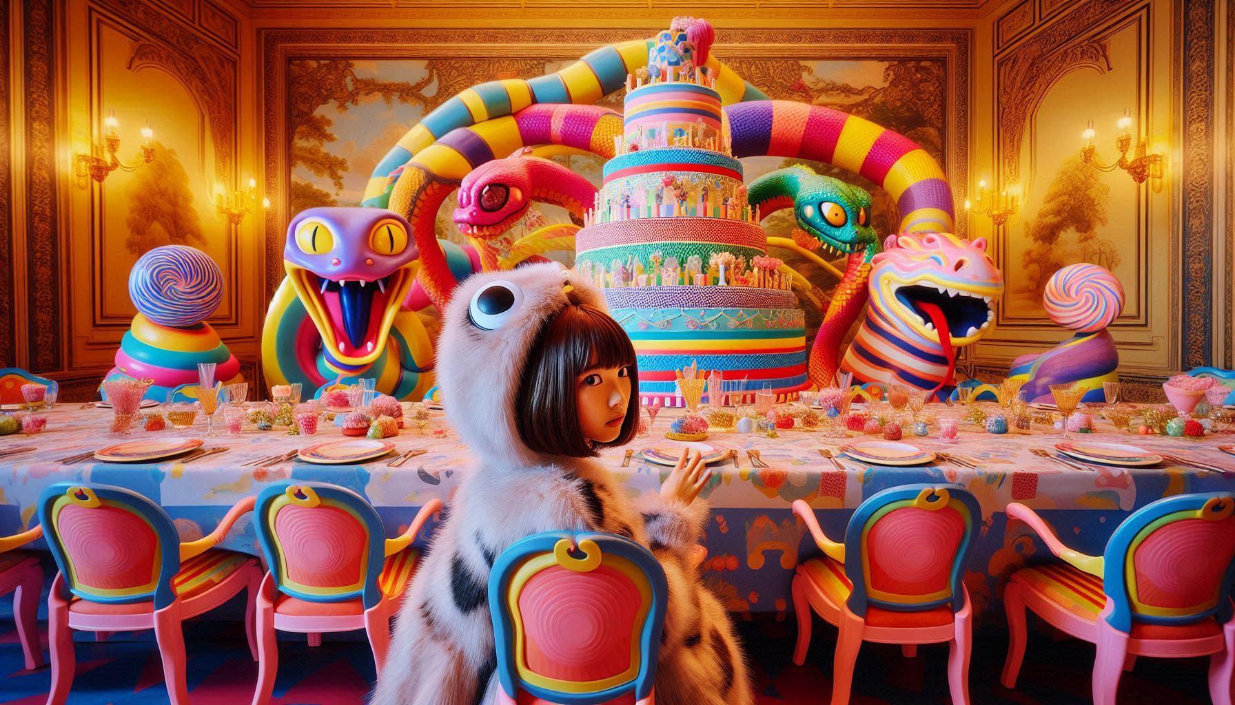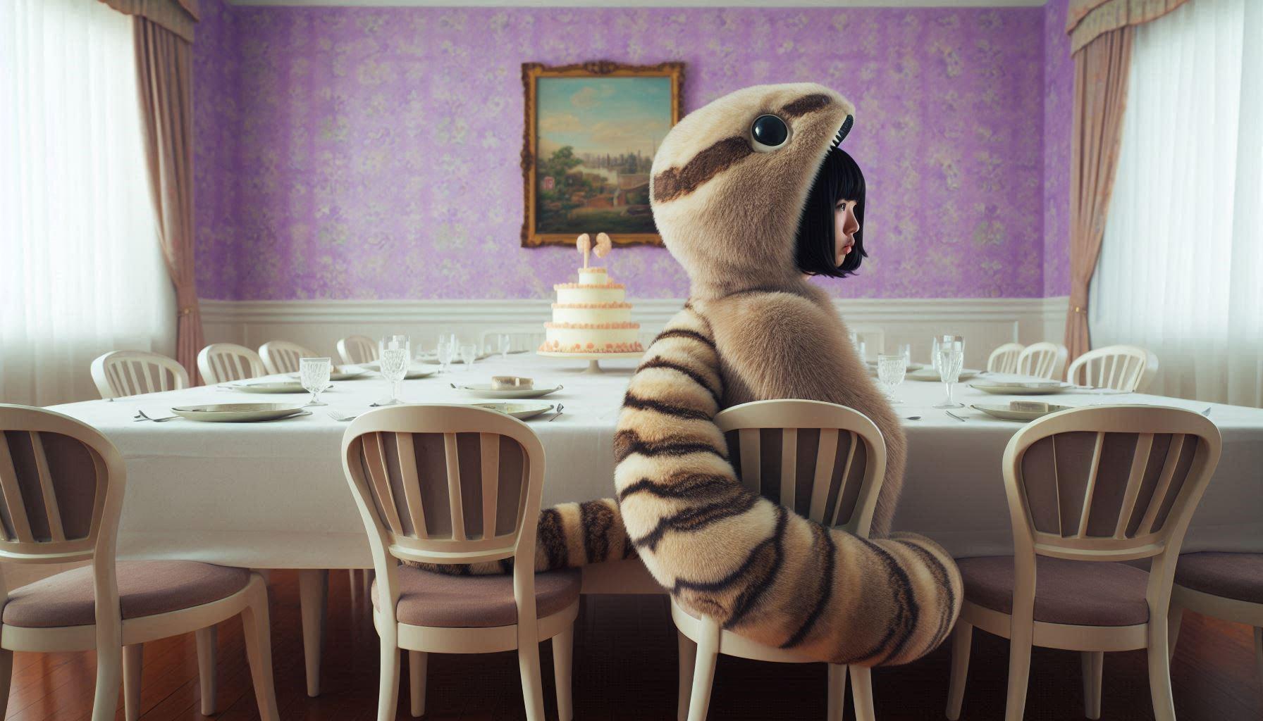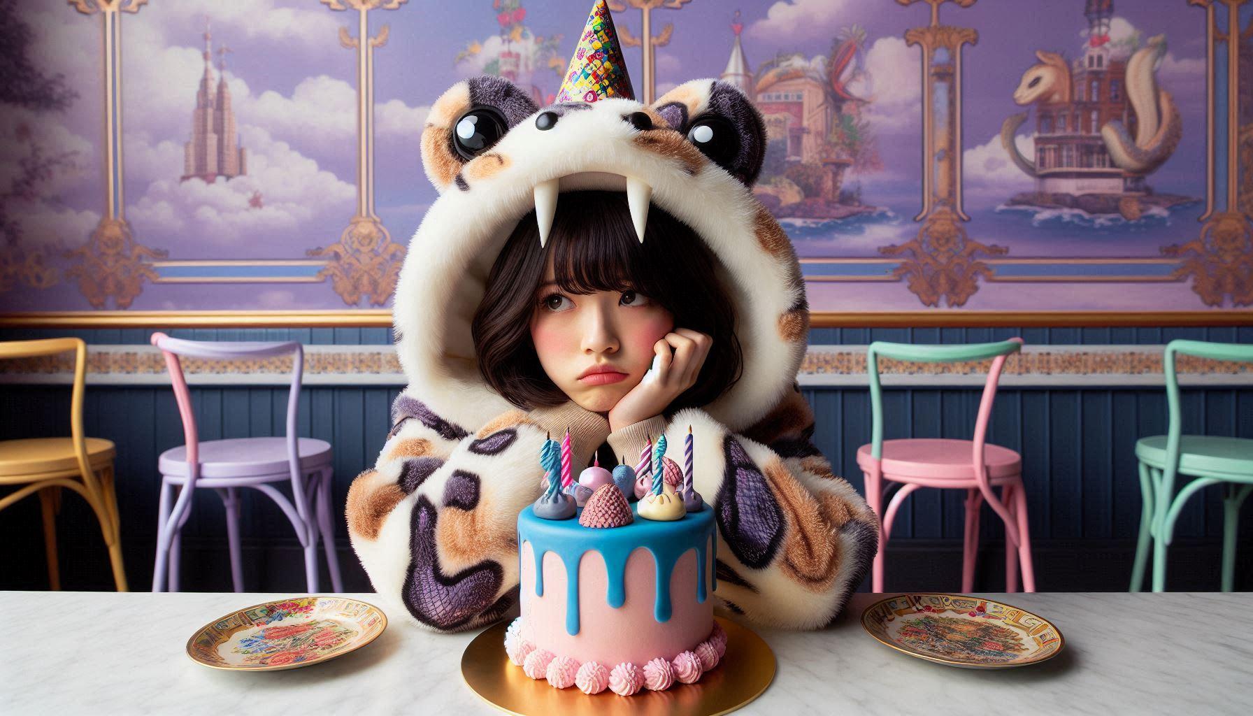 なぜか誕生日だと勘違いしてパーティーの準備をしていたウチノコ。午前0時きっかりに席につきます。