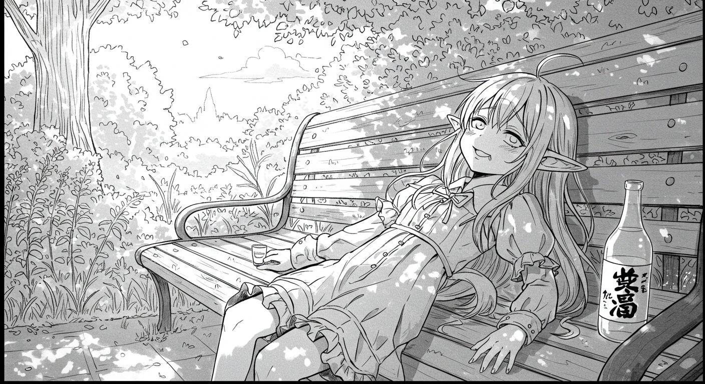 今日も一人のやさぐれエルフが、昼間から浴びるほど酒を飲んでいる……。