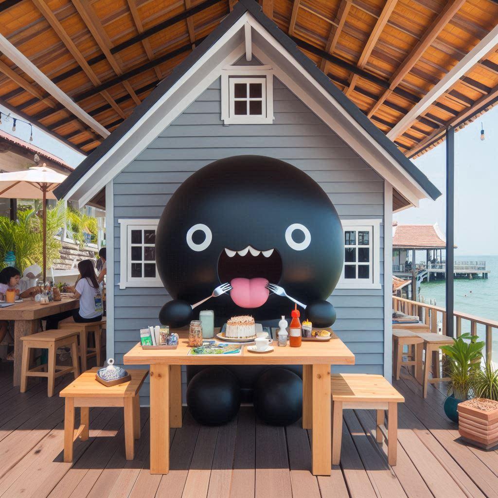 海の家 食べ太る黒 ショートボブ。