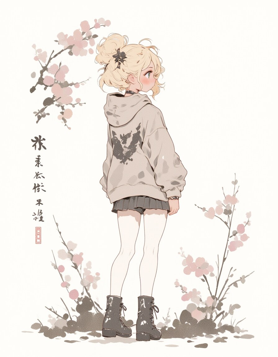 初夏の水墨画美少女:新緑の中で