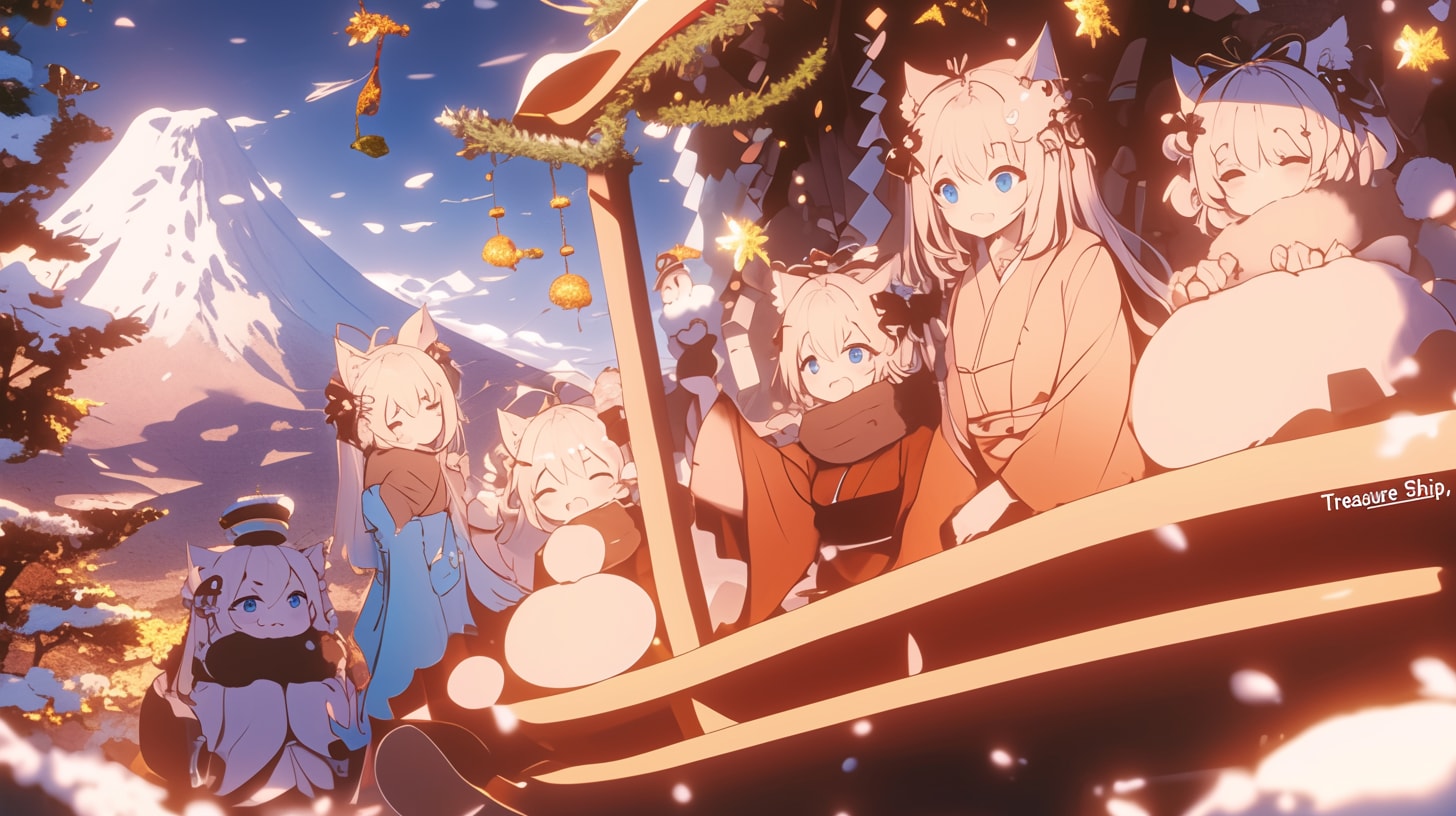 富士を望む宝船に、猫耳乙女の新春祝福が満ちる