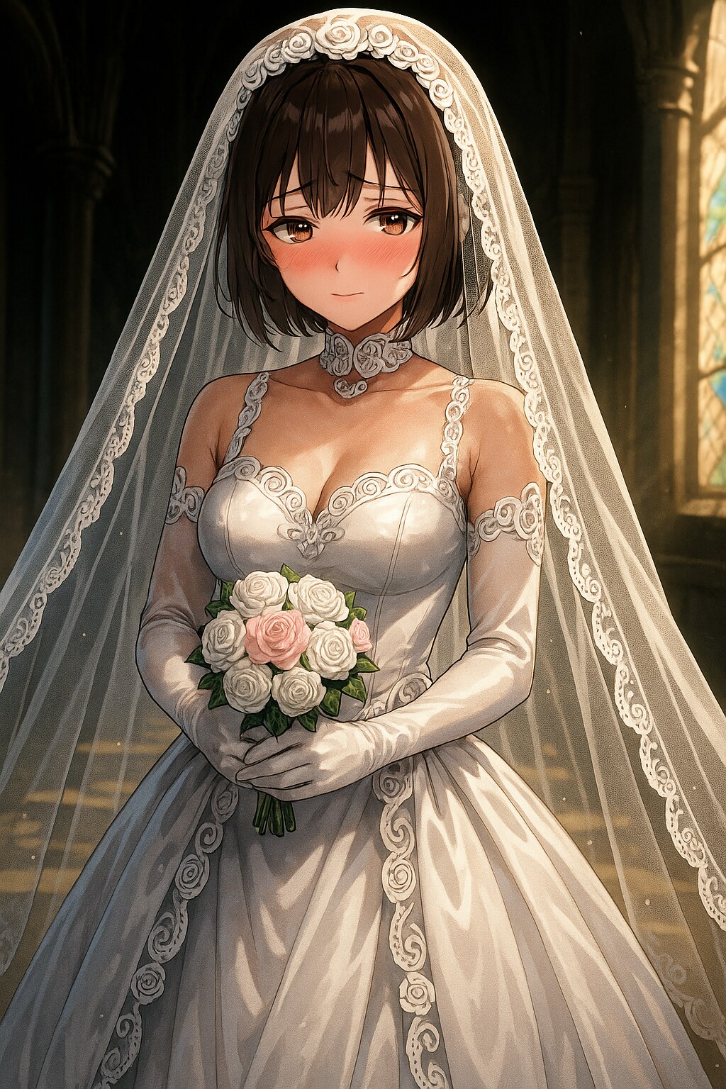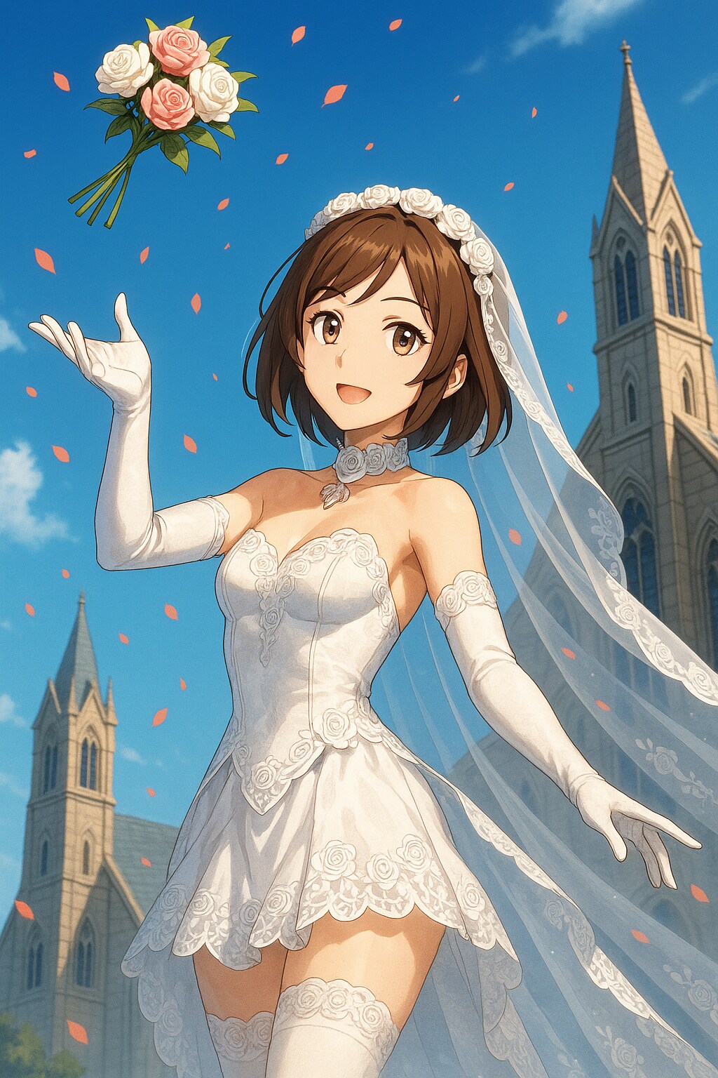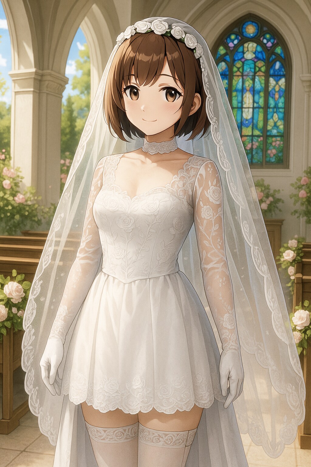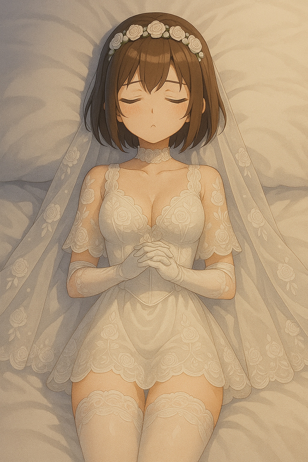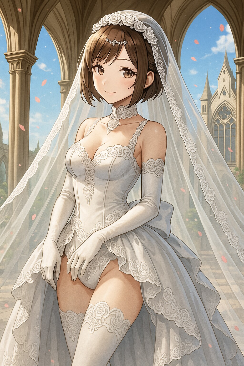 ウェディングレオタード、ウェディングハッスル、ベール、白手袋、レースの靴下、と打ったら