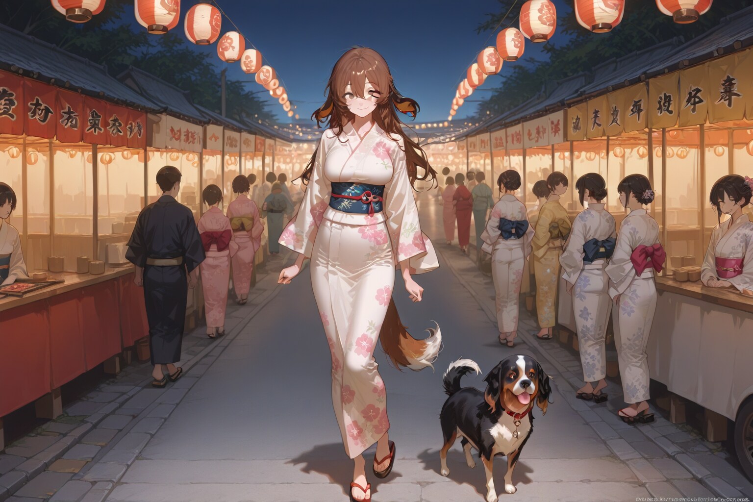 犬耳の女性と夏祭り
