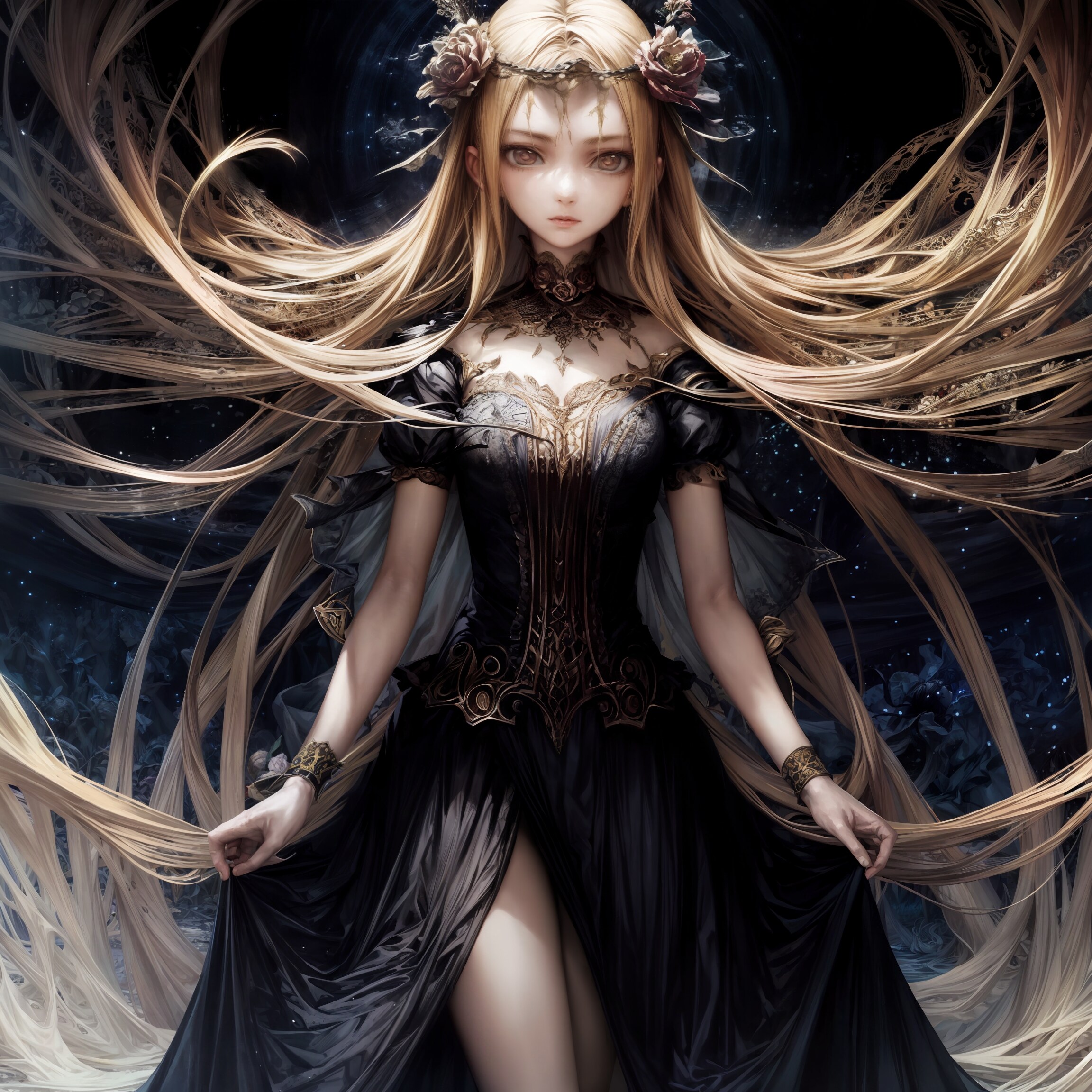 黒と金のドレスが魅せる、月夜の輝く美の饗宴