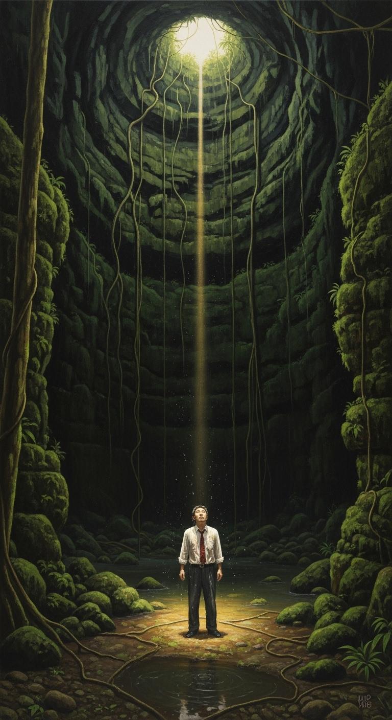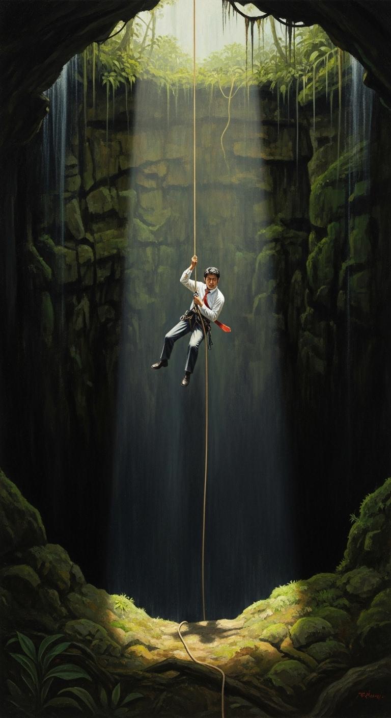 ①ガイドさんに「後はここを降りるだけ👍」と言われ、仕方なく降りるおっさん。