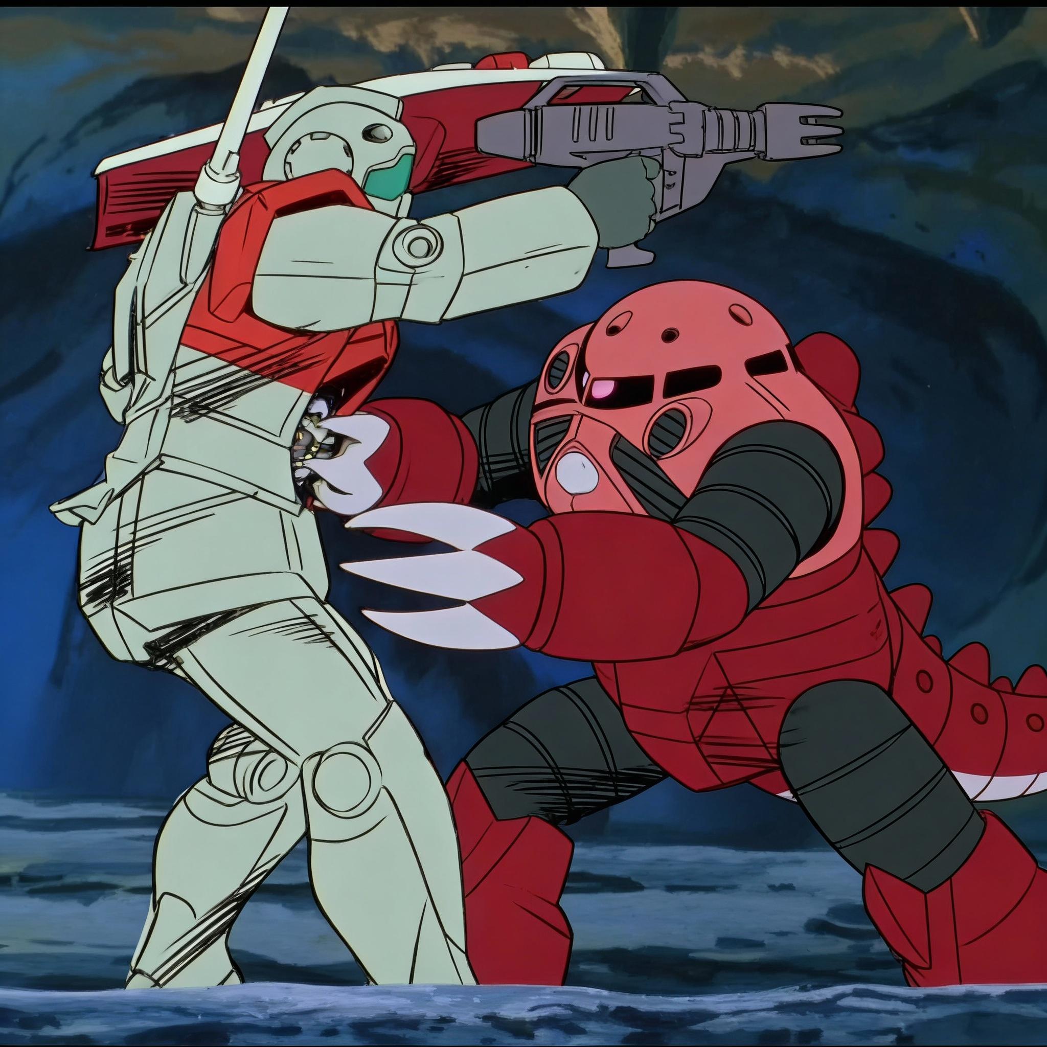 シャア専用の部分をプロンプトから抜くとなぜか両方ガンダム。