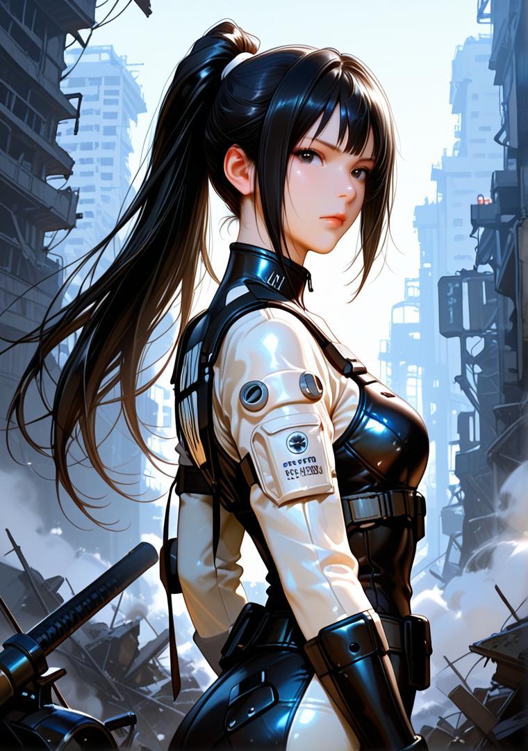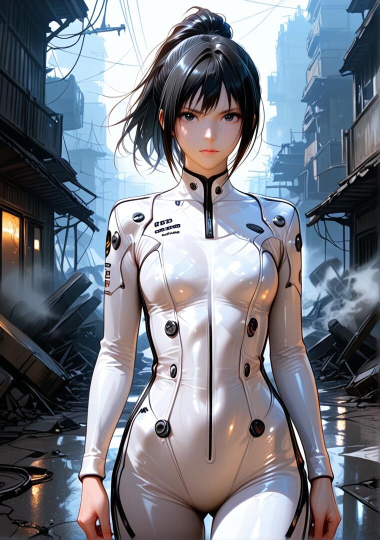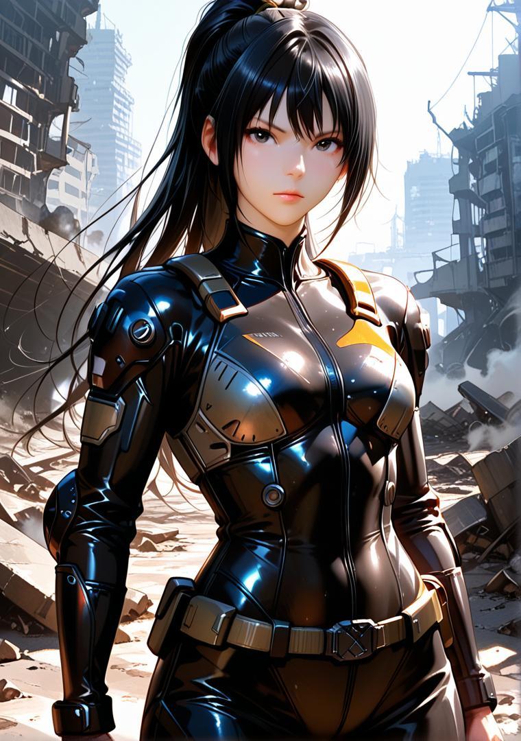 sleek black synthetic battle suit with minimal armor and smooth surface # 滑らかな表面と最小限の装甲を備えた黒の合成素材バトルスーツ