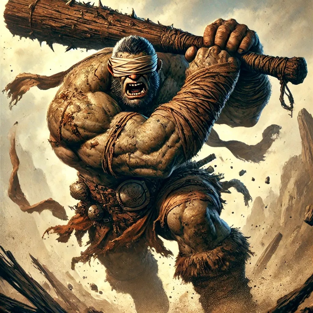 ・桁違いの脚力と怪力で、適当に振り回した棍棒で周囲の障害物を粉砕する。