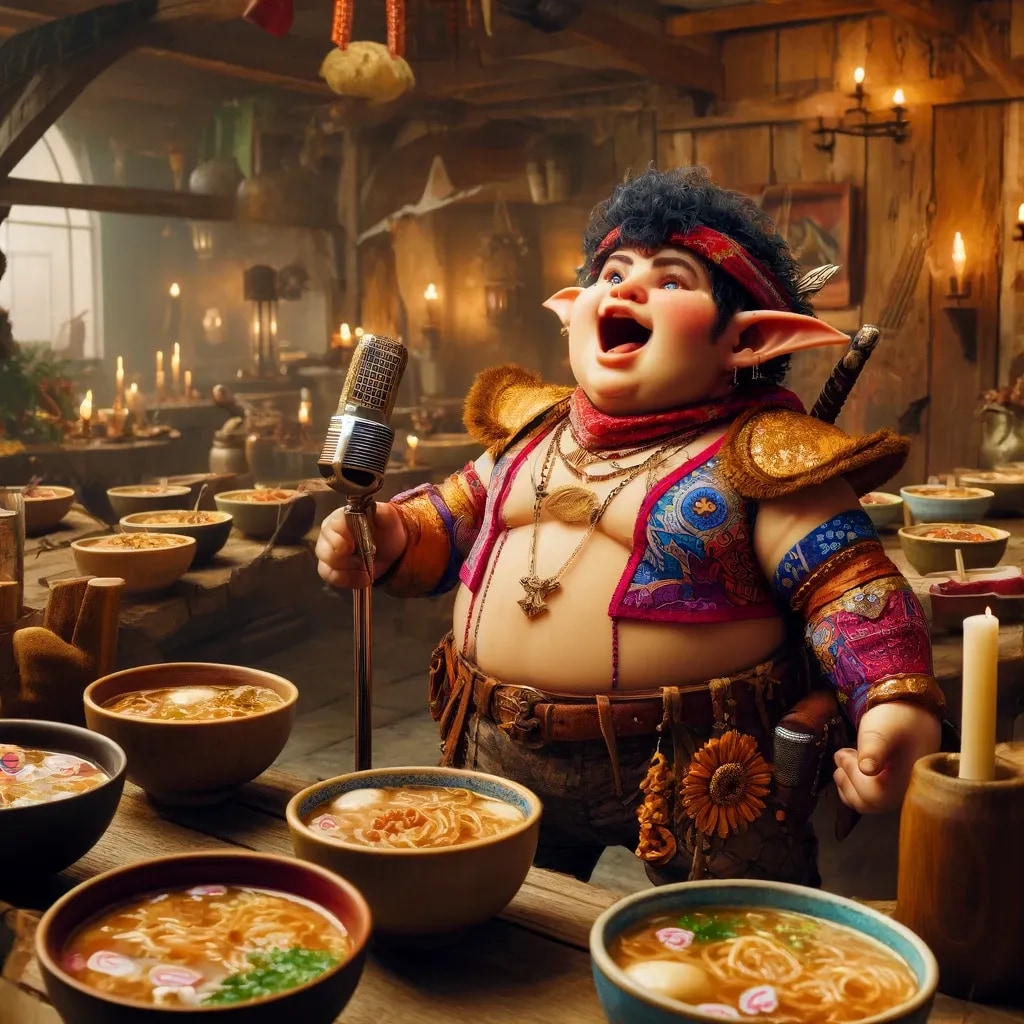 ラーメンを食べる前にテンションを高めているのかもしれませんね。異世界の食堂がさらににぎやかで楽しい場所に感じられます!