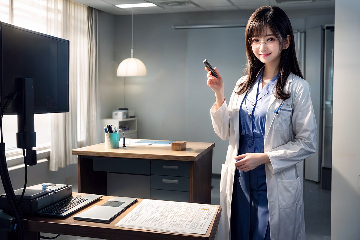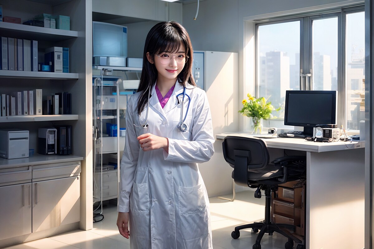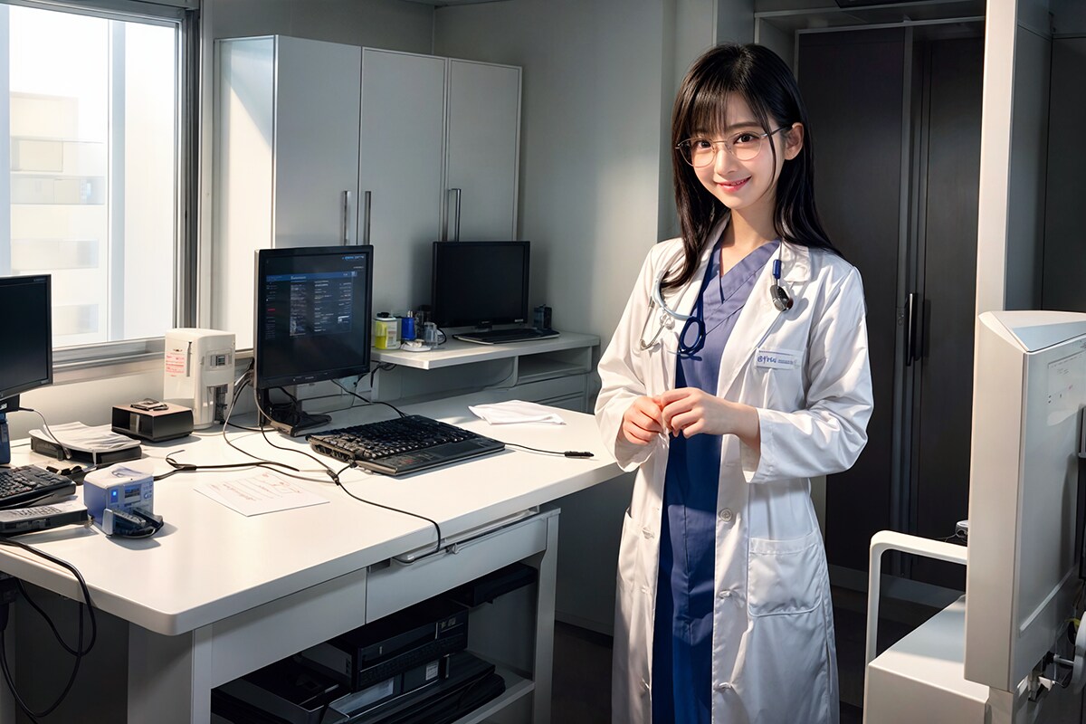 数学教師に引き続きメガネの女医さんですー発想がありきたりですね😅