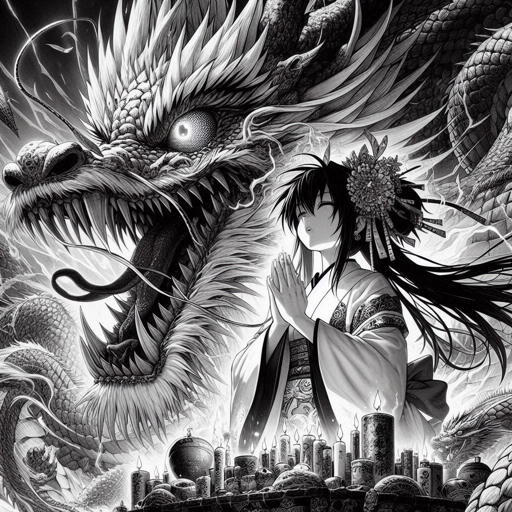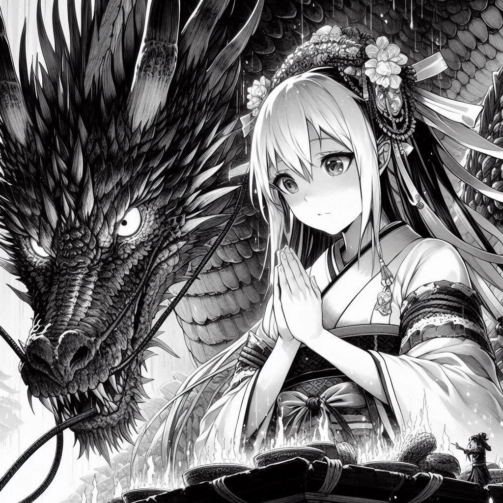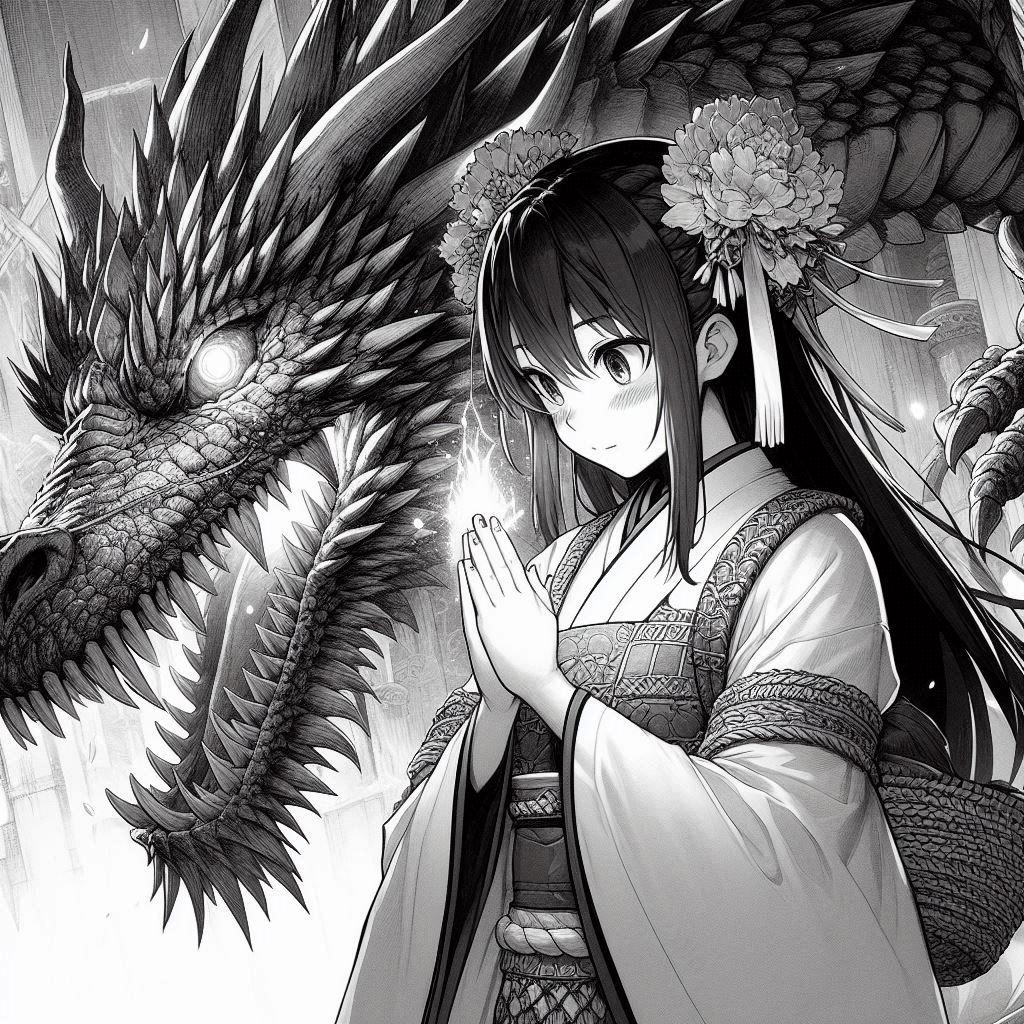 根拠なしの何となく?なんですが?Dalle先生、モノクロにするとキャラデザを少しかわいくしてくれる気がして?モノクロ版も生成した次第です。