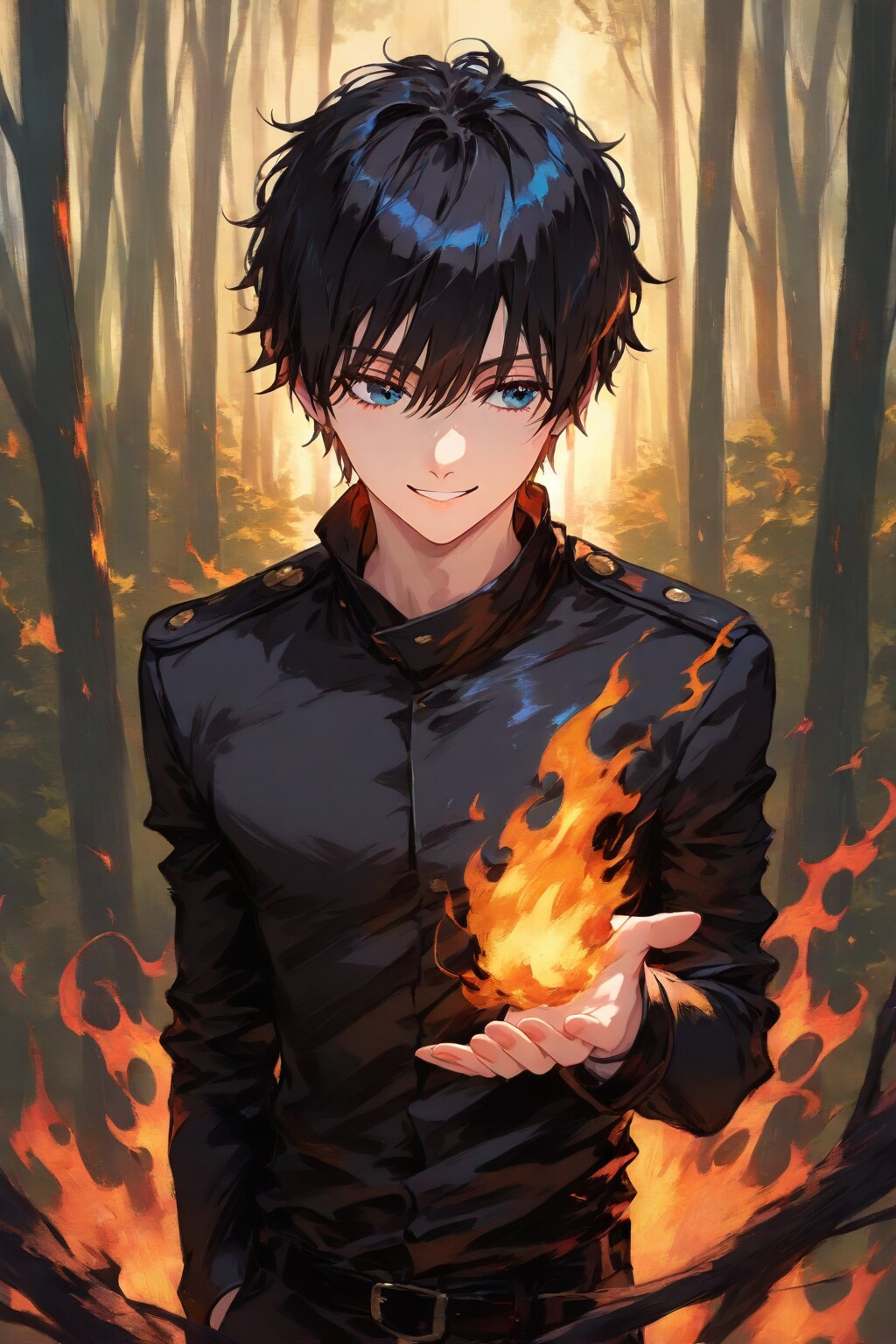 花粉の原因を燃やしてみました。手がうまくいきませんでしたが、火はいい感じに生成できました。2枚目はi2i元のV4B生成イラストです。
