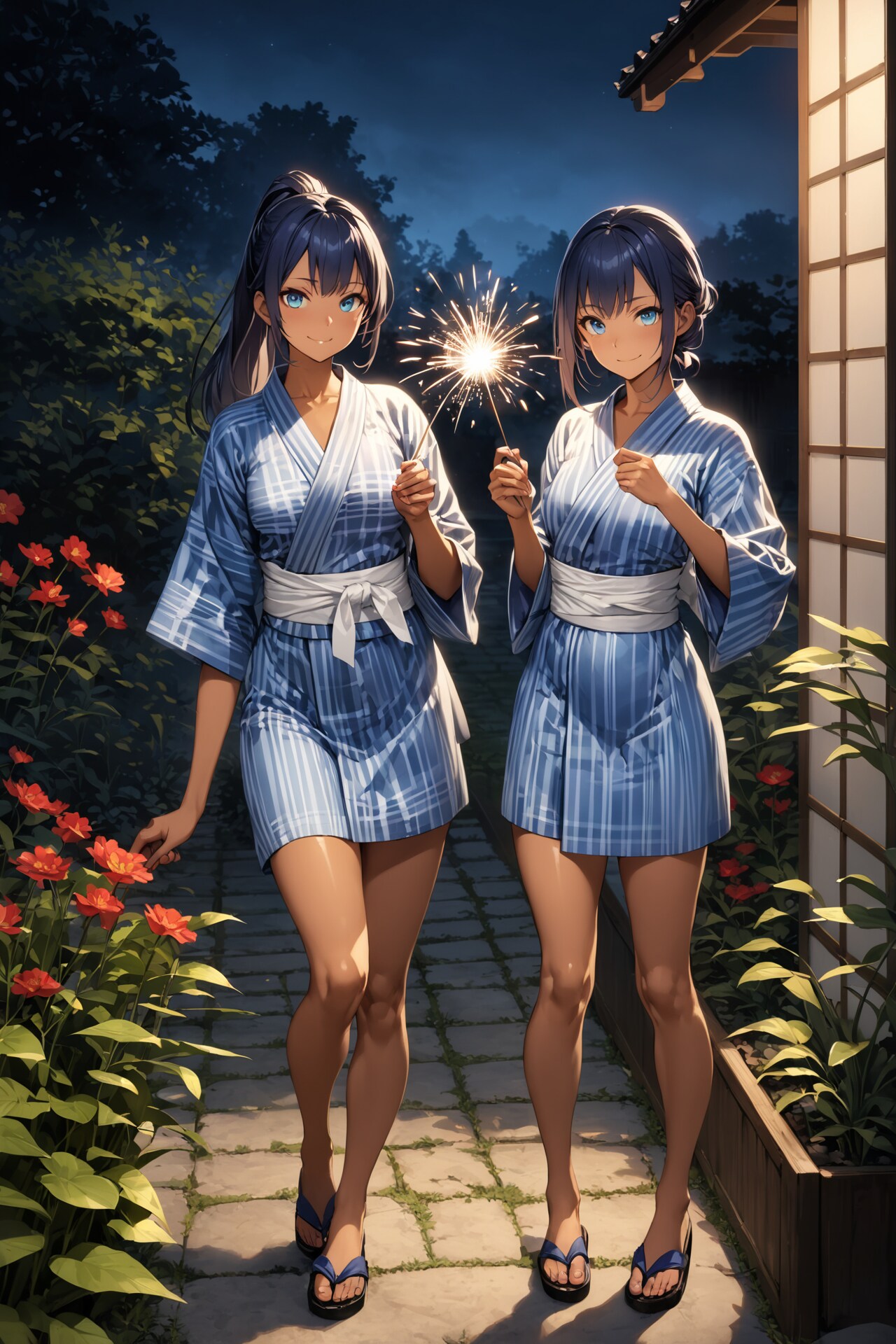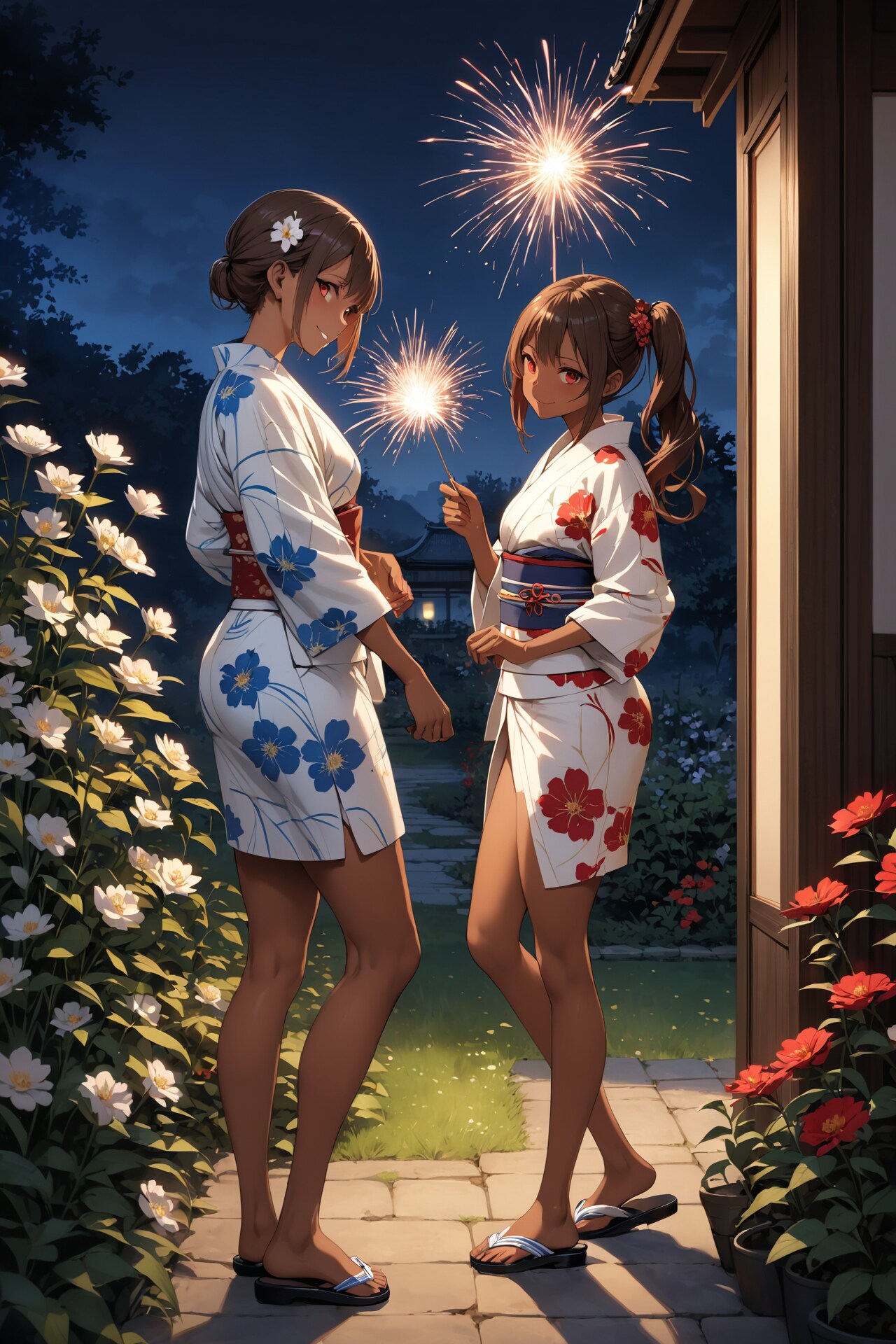 姉妹で七夕花火を楽しむ様子です。