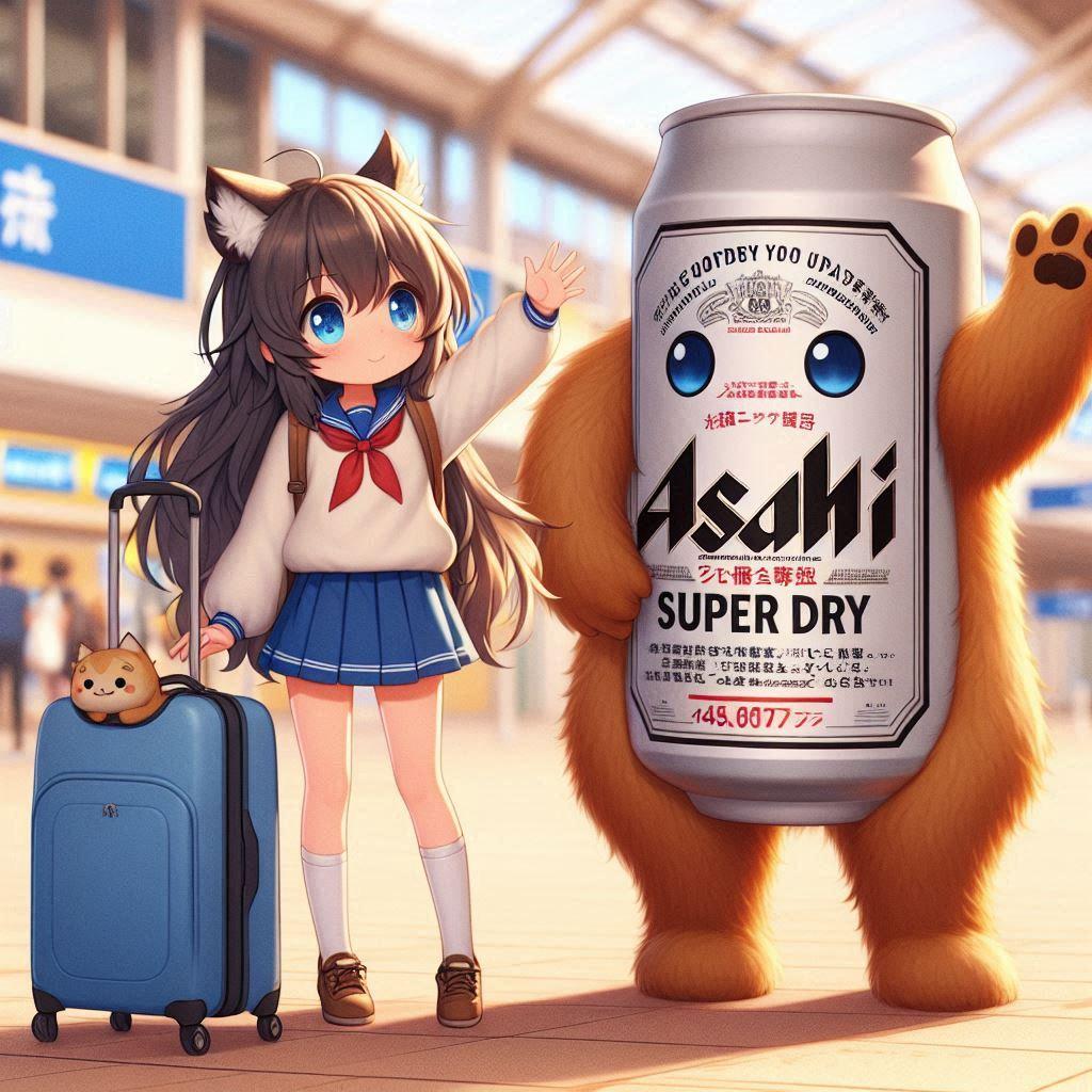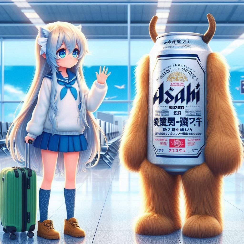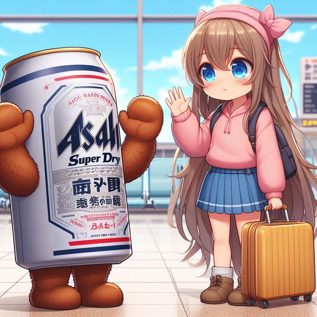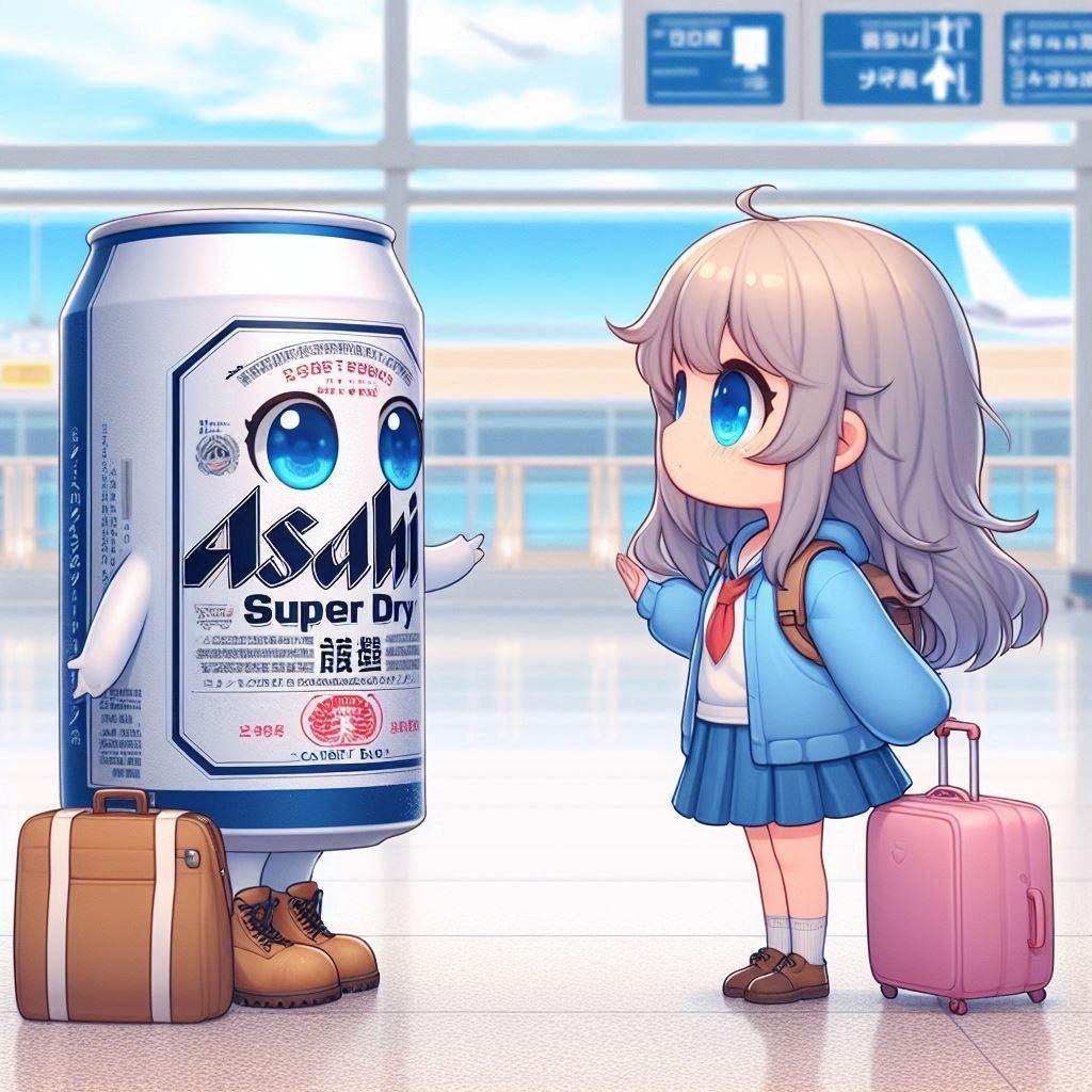 空港でのビール缶と小さな女の子