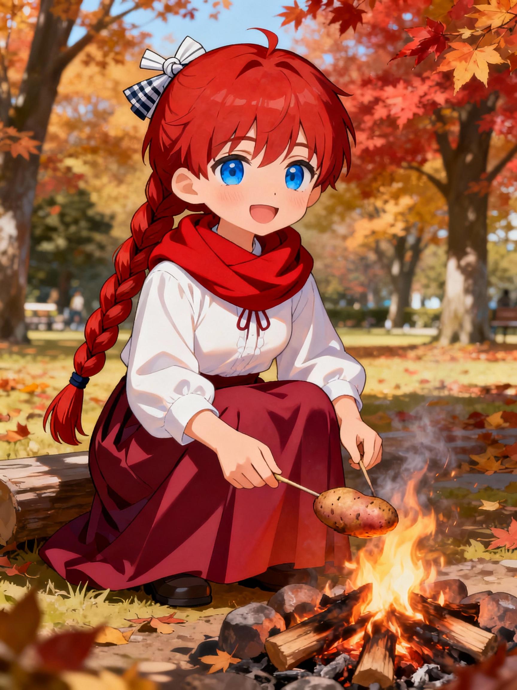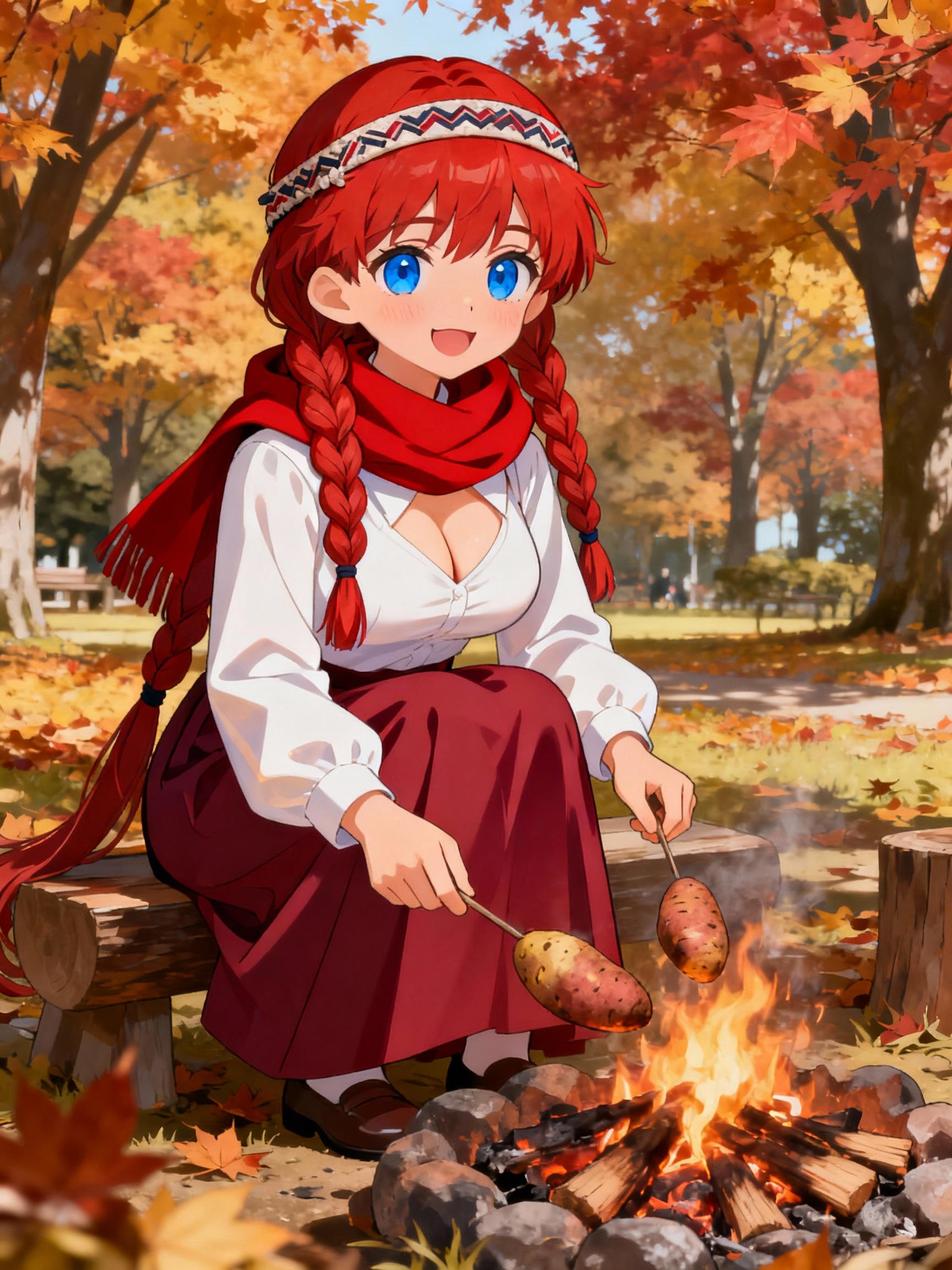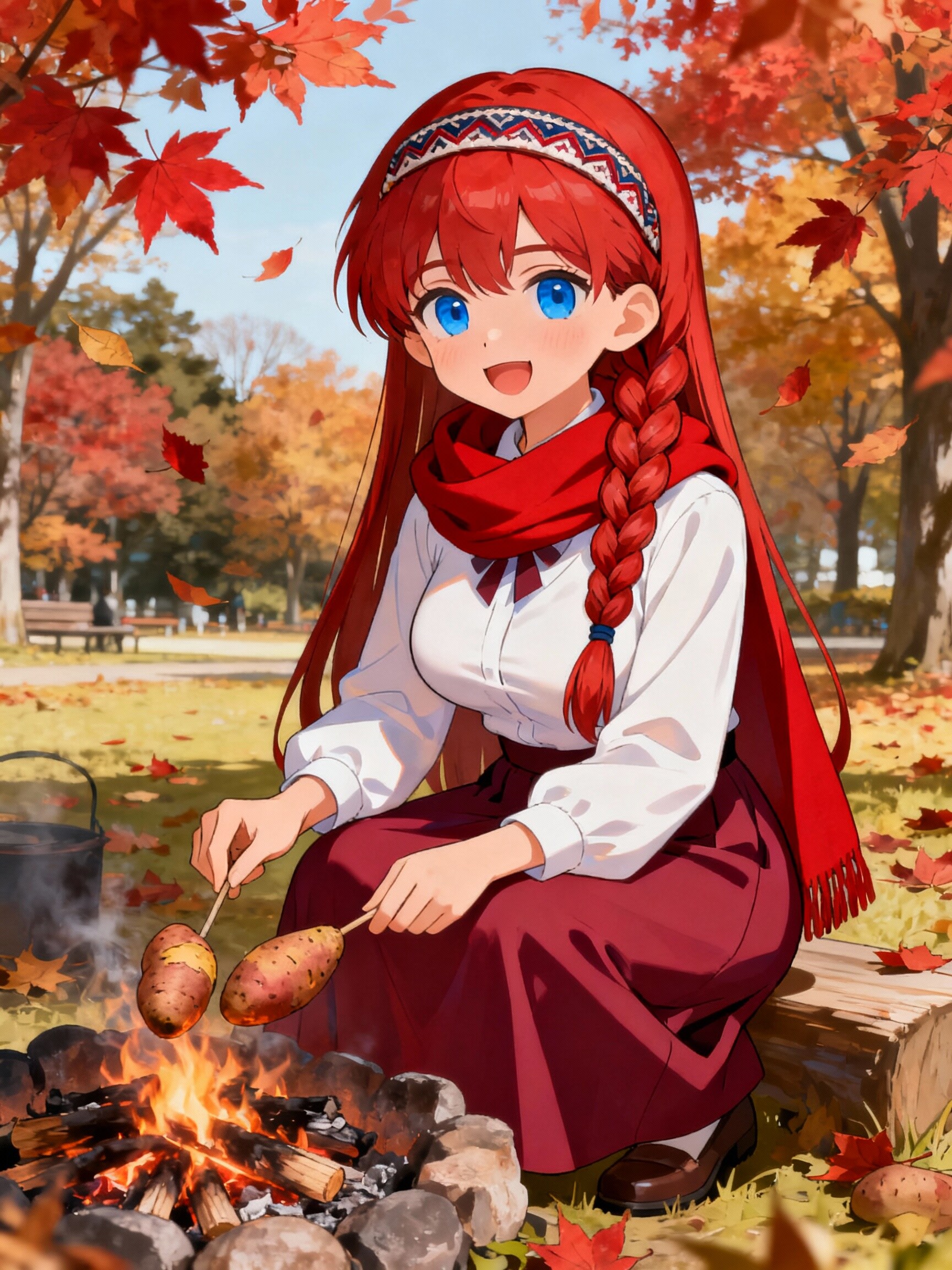 焚火で焼き芋を焼き、そこから微動だにしない赤髪兄こと赤上小織くん。
