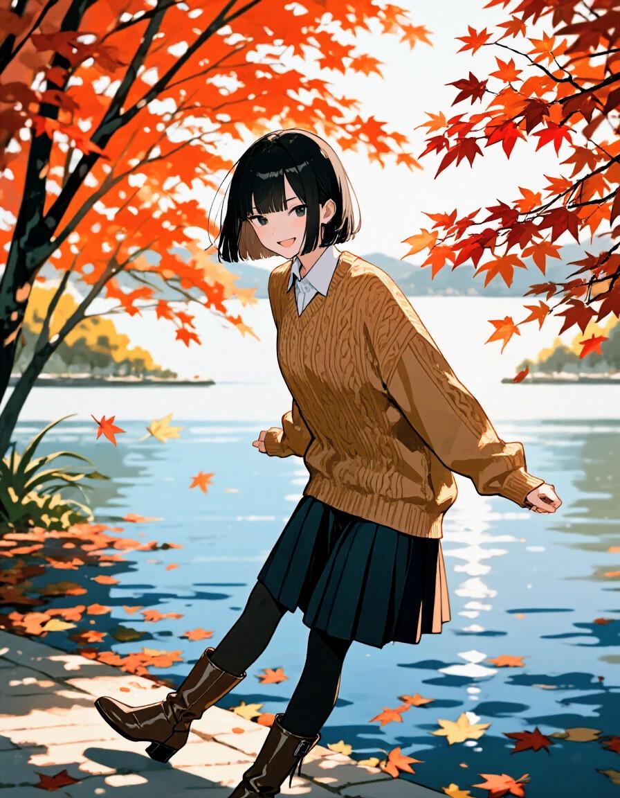 琵琶湖の紅葉と千鶴お姉やん🍁