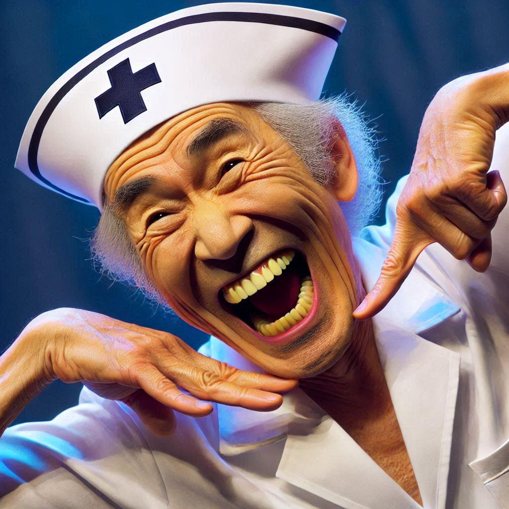 ナースのぶお2号のうち、のぶお君といえば「歯が命」で有名ですね。芸歴30年。アマチュア。平成中期に東幹久さんと高岡早紀さんによるアパガードのCMが流行したのをパクって「のぶお君は歯が命!」という一発ギャグを25年以上やらせてもらってます!🥸🥸