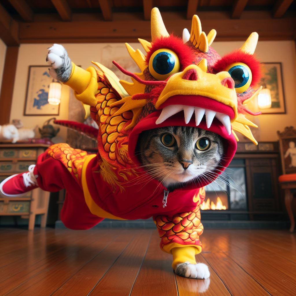 1/3追記:「辰年を奪おうとする猫」が2024年1月2日のAIフォトデイリーランキング1位に入りました!