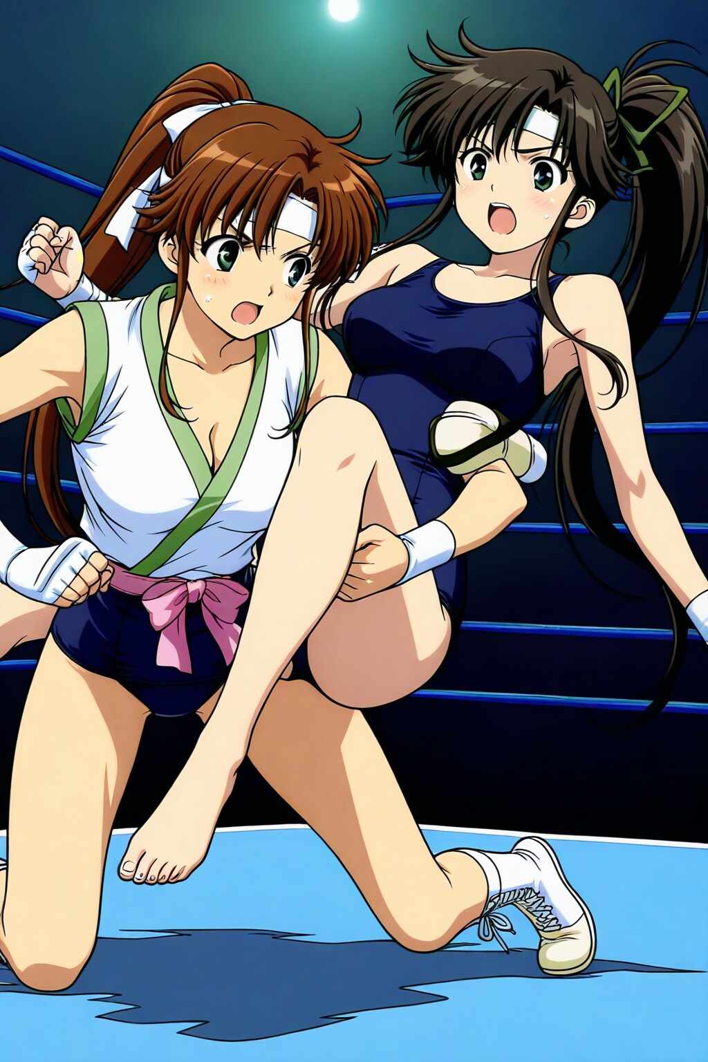 体操部の火野未麗。まことに呼ばれてプロレスのスパーリングに付き合わされました。