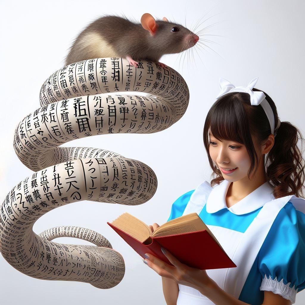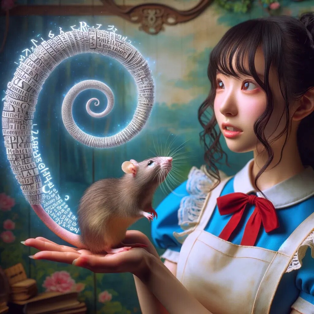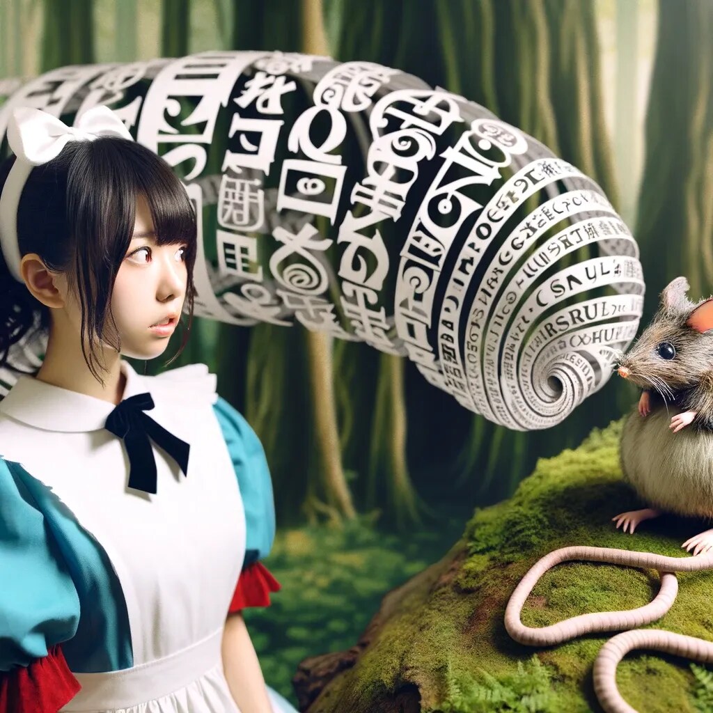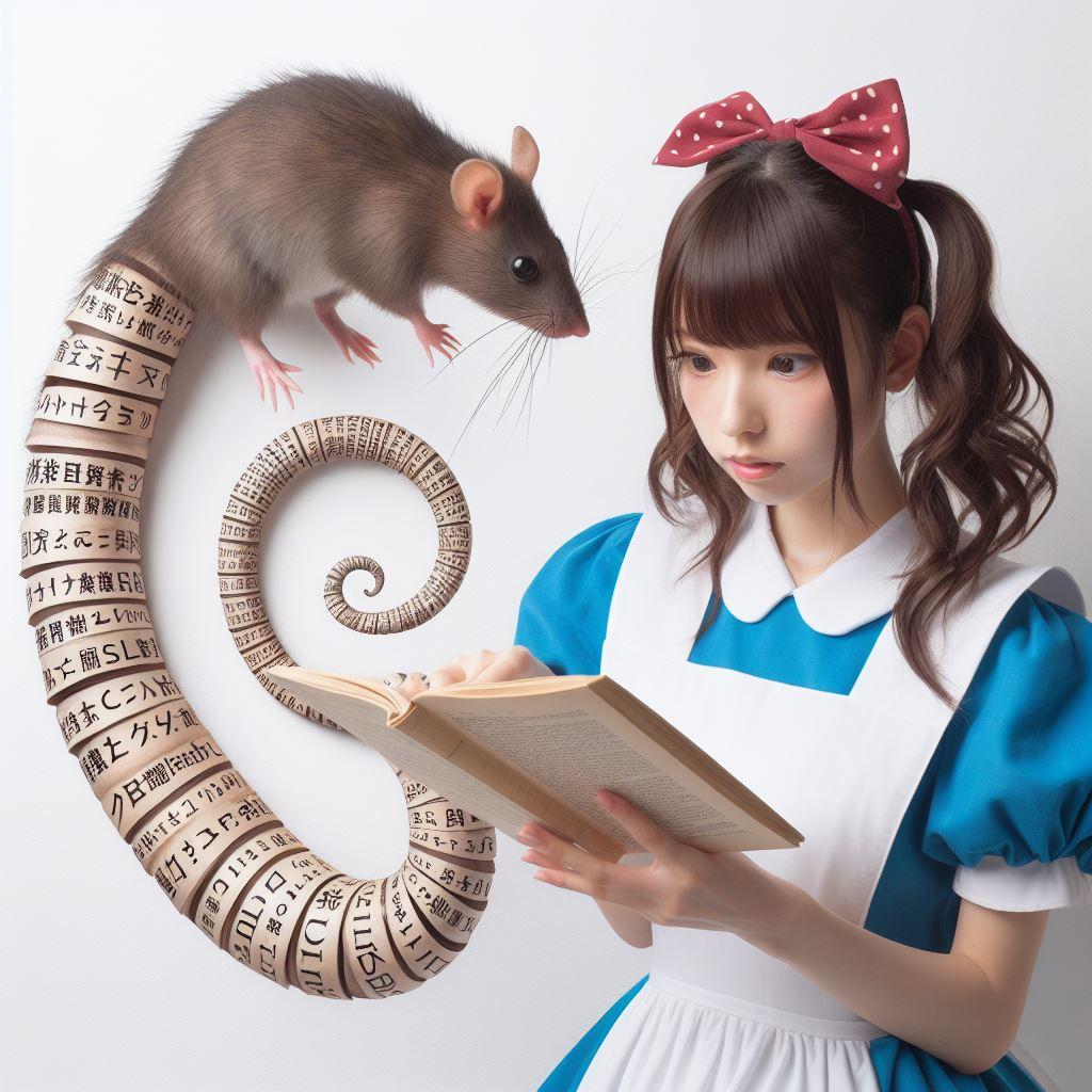 アリス昔読んだんですが、ネズミと話すシーンの文章がネズミの尾の形になっているのが衝撃的で「なんだこれは」となったのを覚えています。ヘンテコで自由で大好きなこのシーンをどうしても再現したくなってしまったのです。