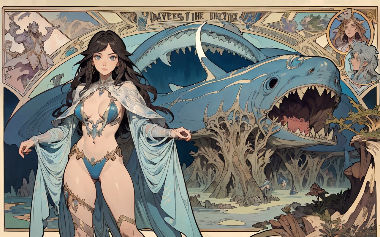 イメージは扉絵的な感じで雰囲気重視の集合絵で装飾ゴチャゴチャなせいもあり指を筆頭におかしな部分も満載。