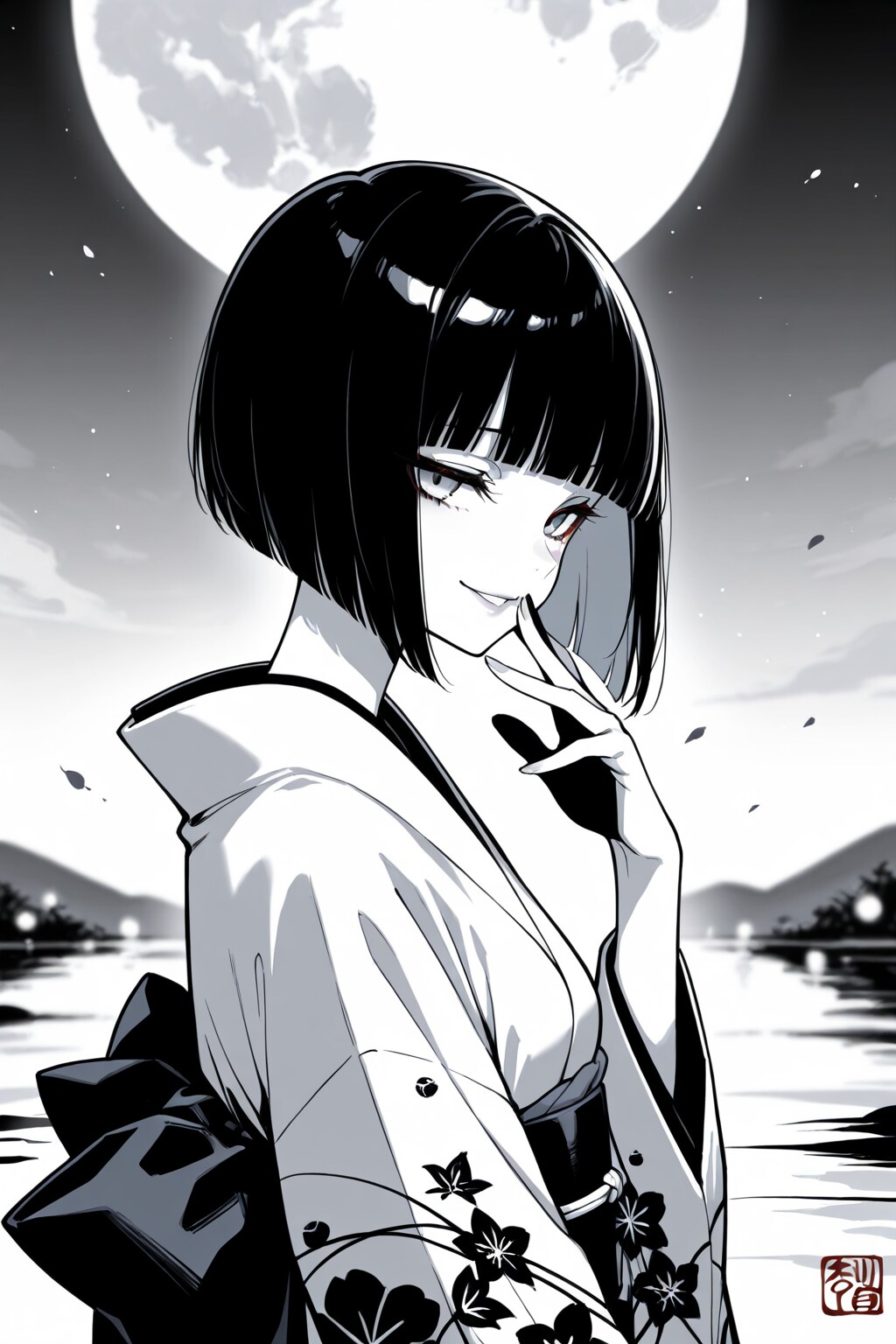 水墨画っぽくしたかったけど、このプロンプトの書き方だとうまくいかないなぁ