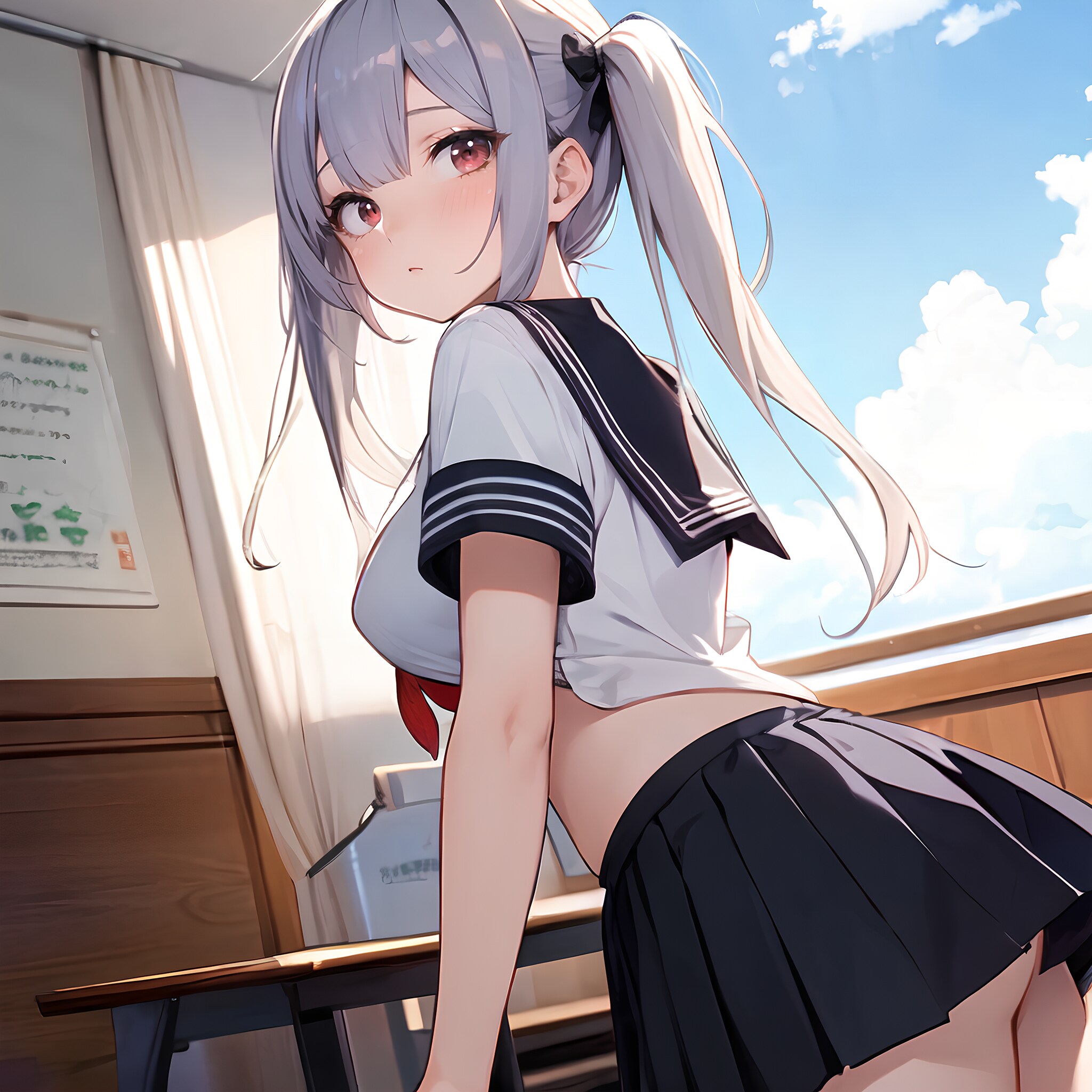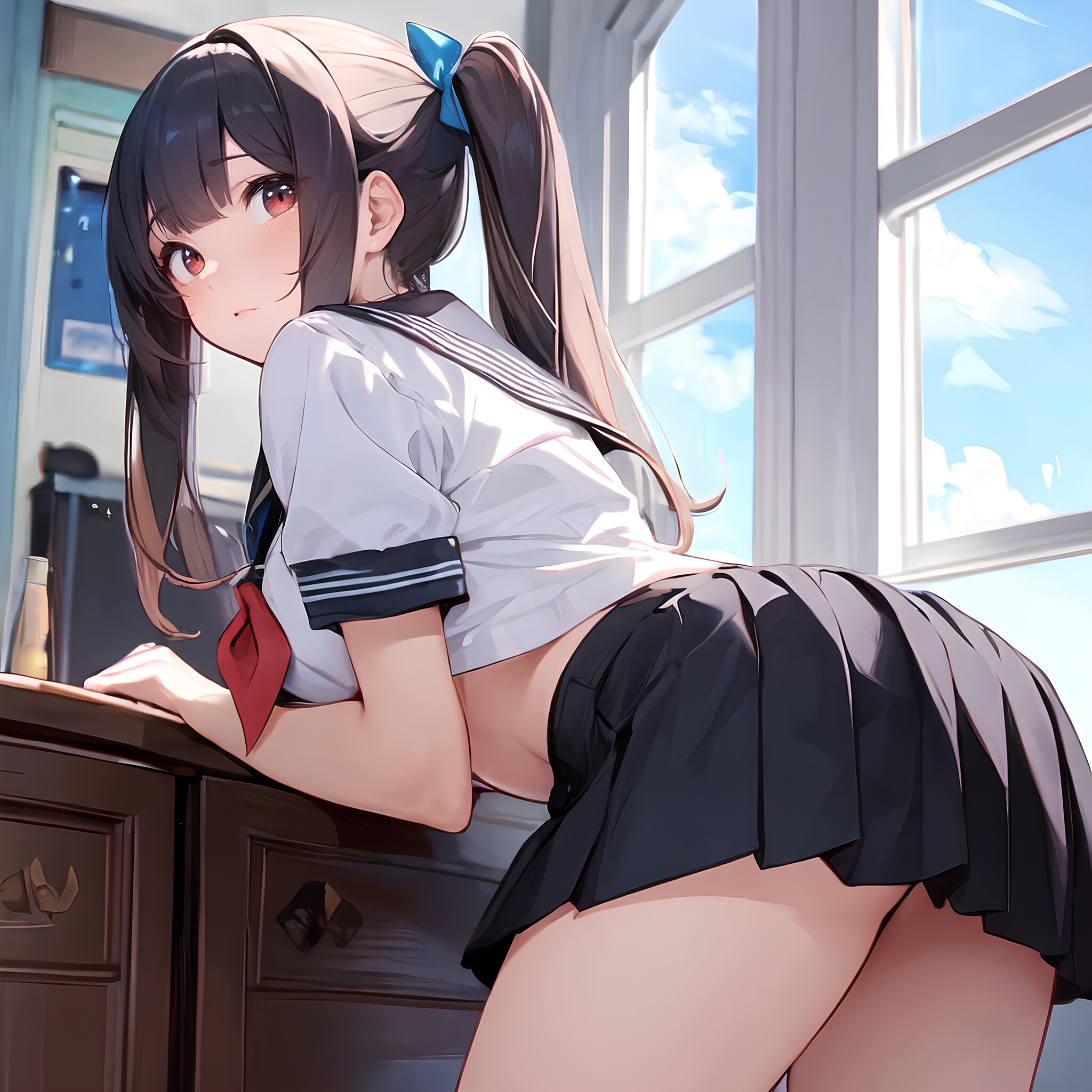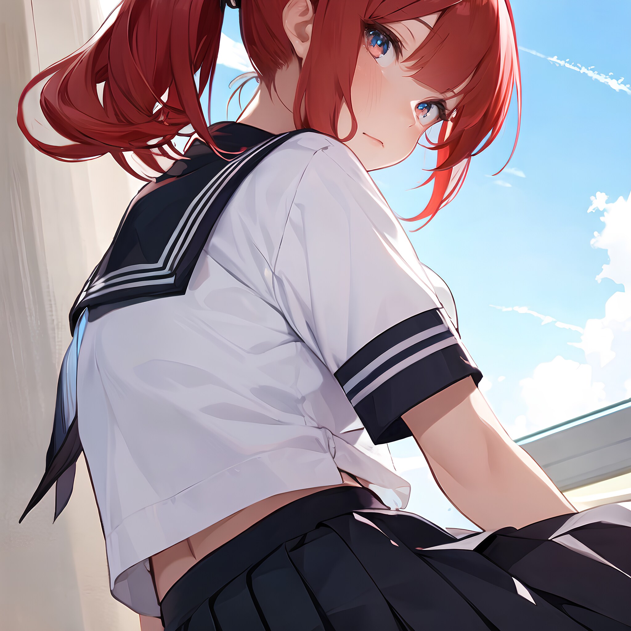 ミニスカ制服ツインテJK♪ こっちを気にしてる♡ 1(12枚)
