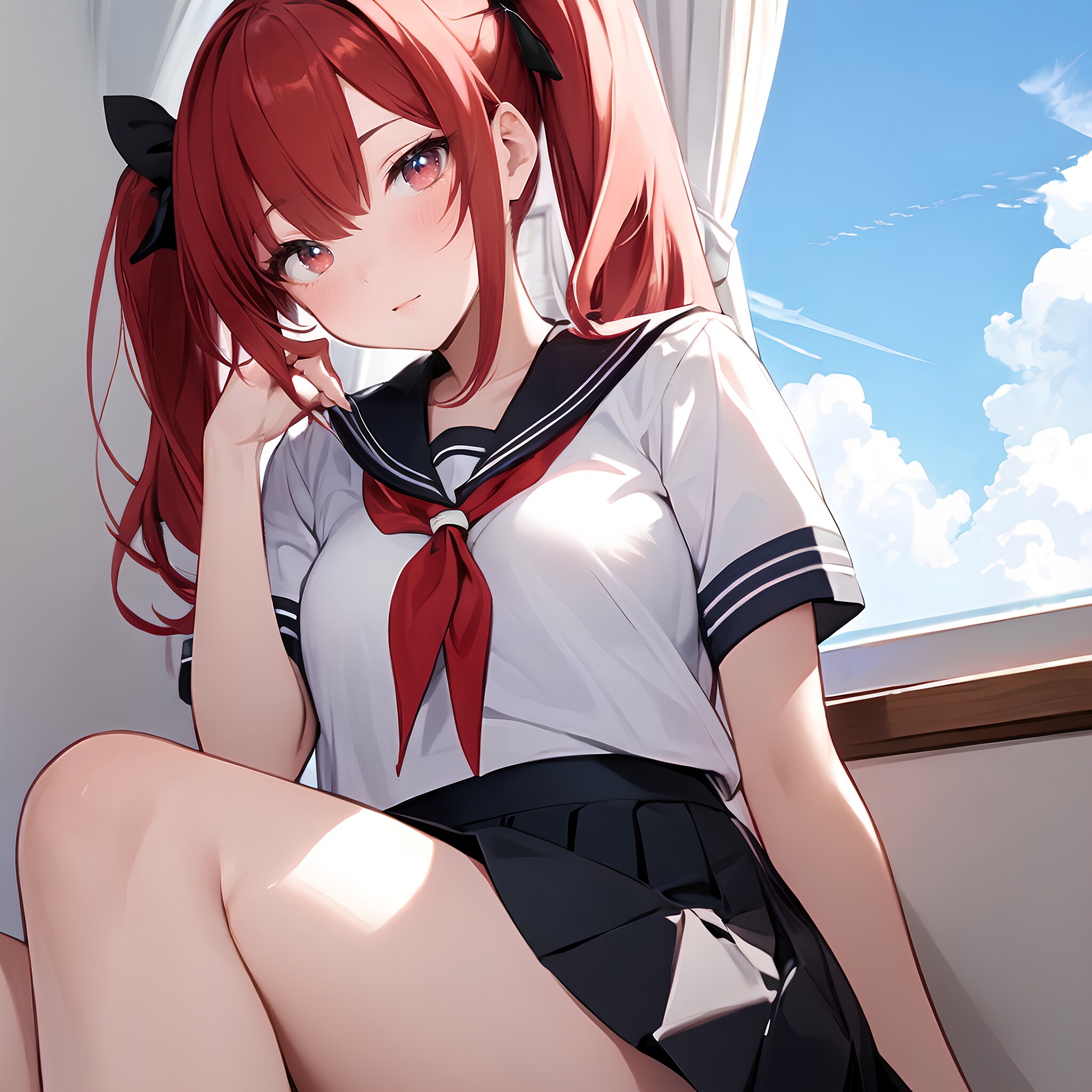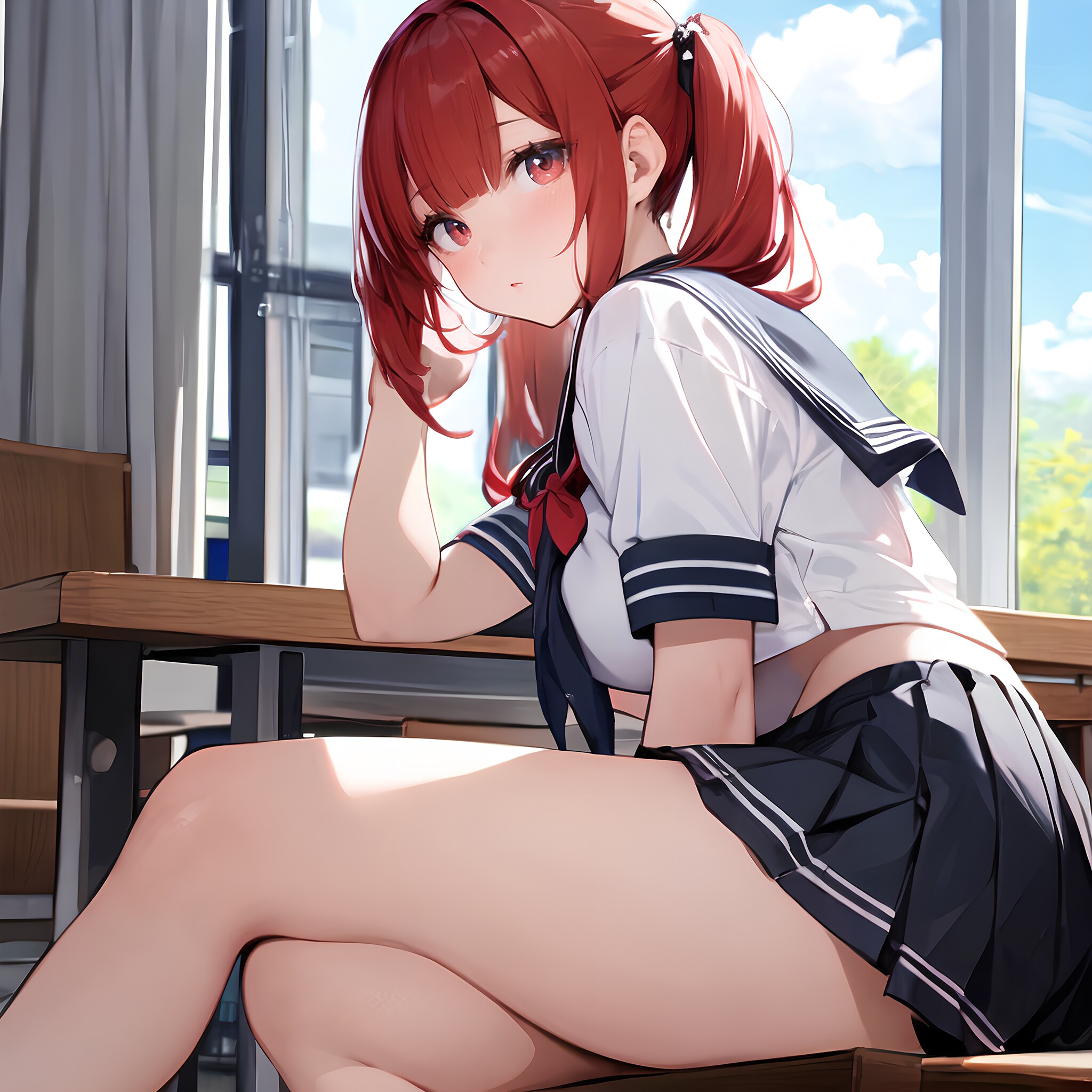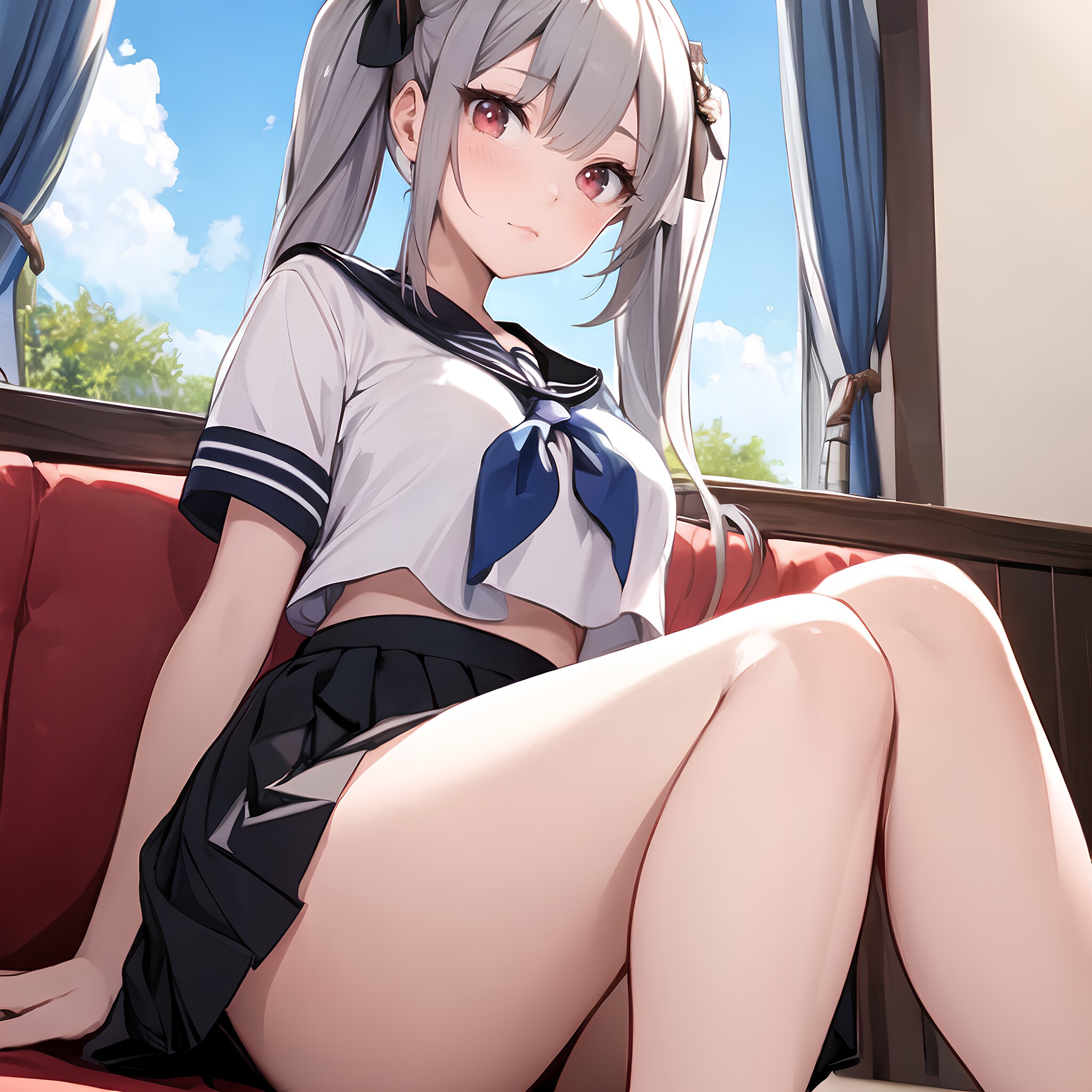 ミニスカ制服ツインテJK♪ こっちを気にしてる♡ 1(12枚)