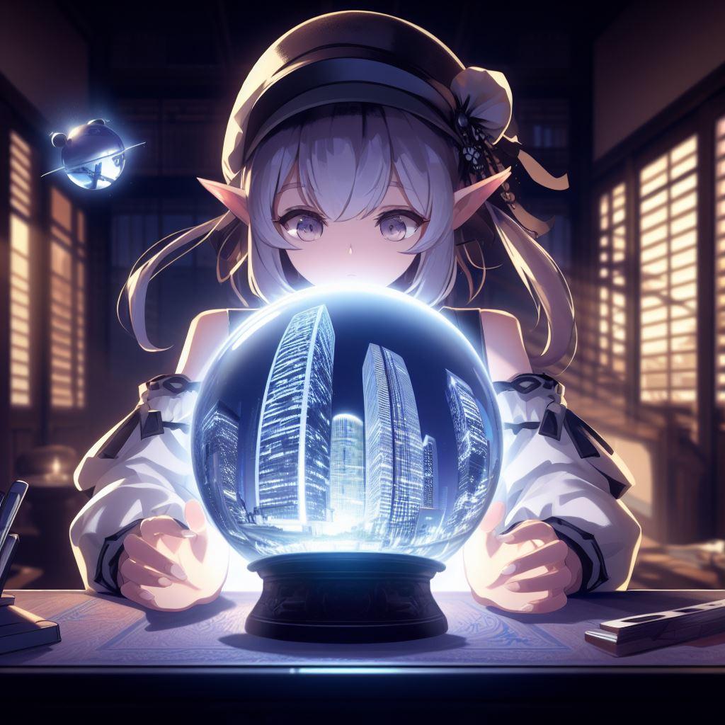 水晶玉の中に、大都会のビル街が映し出されていた。
