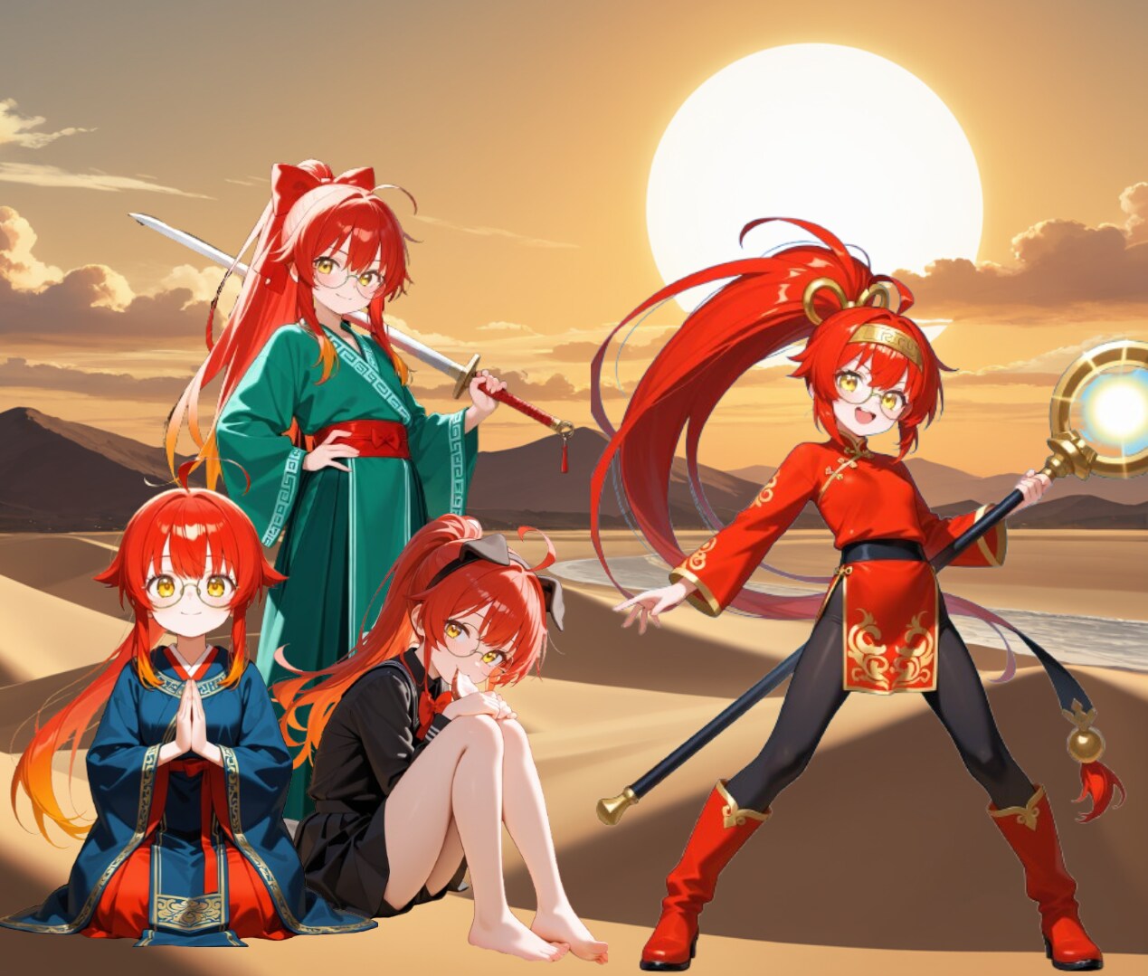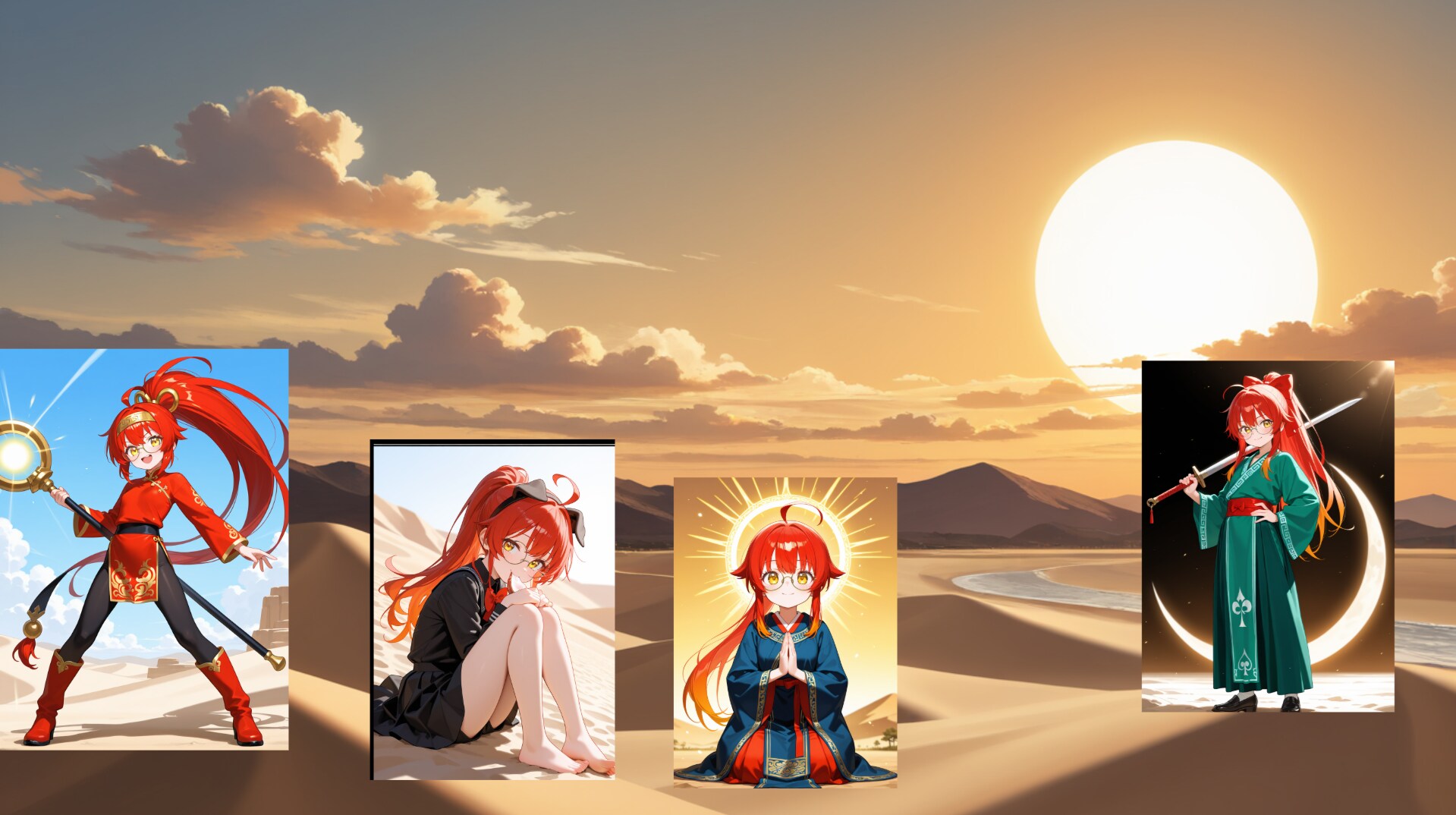 背景準備して、各キャラを配置して1枚絵を完成させよう!という試みです。