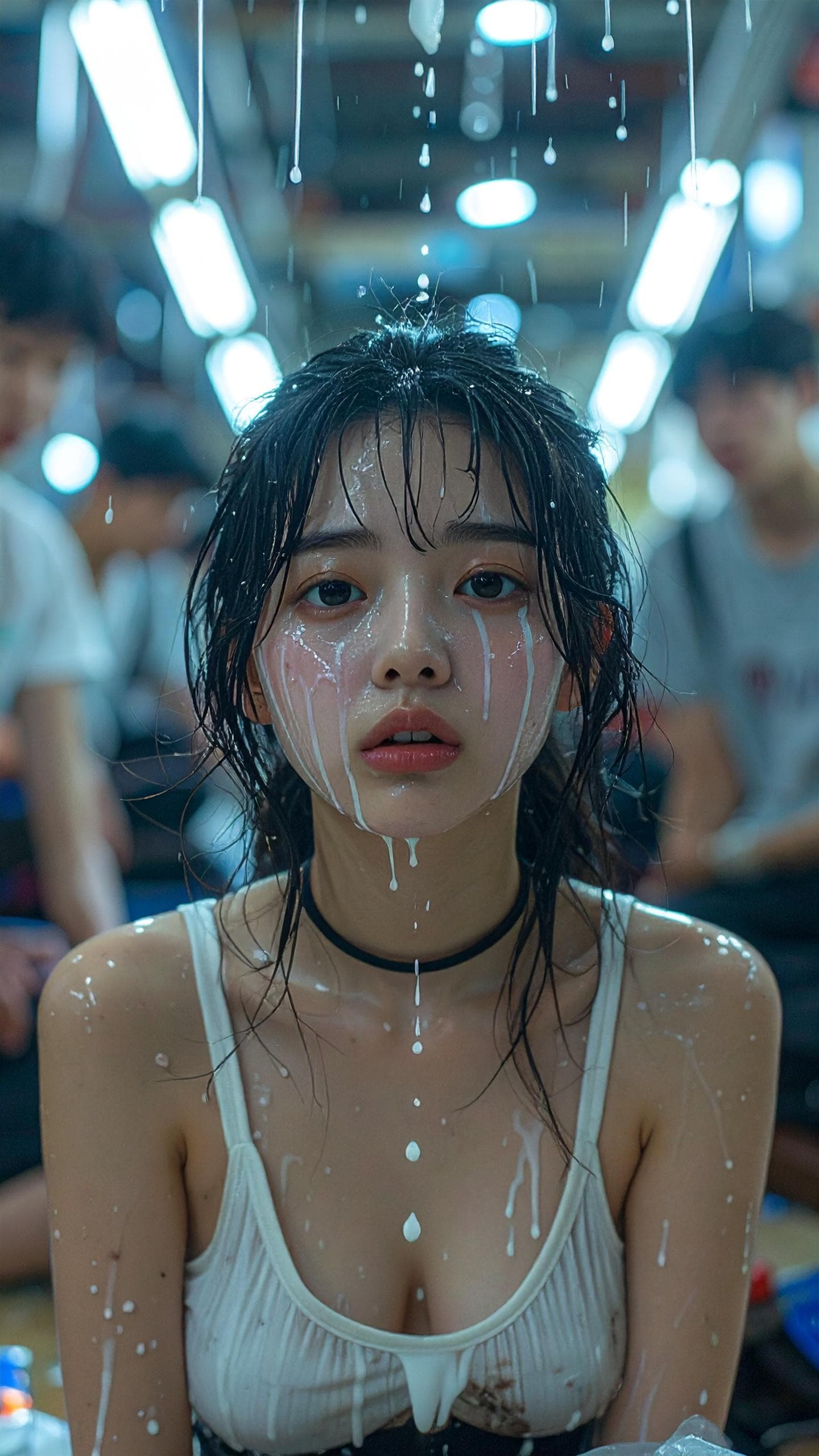 ミルク風呂で射精する巨根ふたなりちゃんたち