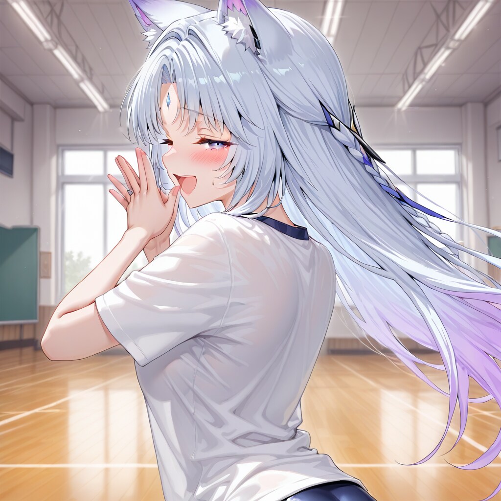 ブルマなのかスパッツなのか半ズボンなのか、想像の膨らむ構図ですね✨️