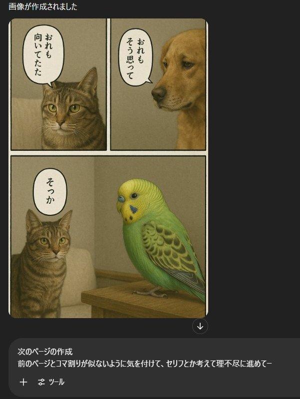 前のページとコマ割りが似ないように気を付けて、セリフとか考えて理不尽に進めてー