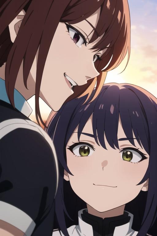 やめてよね本気で喧嘩したらサイが僕に敵うはずないだろ,仲直り,笑顔,夕焼け