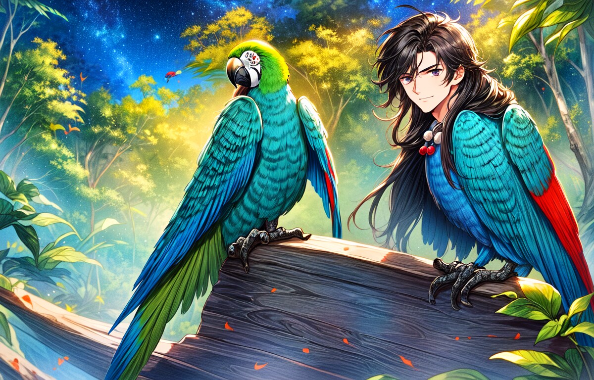 こちらでもコンゴウインコと組み合わせて生成してみましたー。