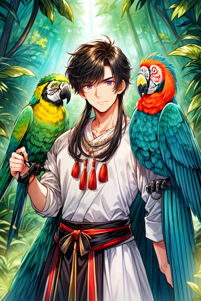 アマゾンとコンゴウインコと、黒髪短髪男性★その1(2枚)