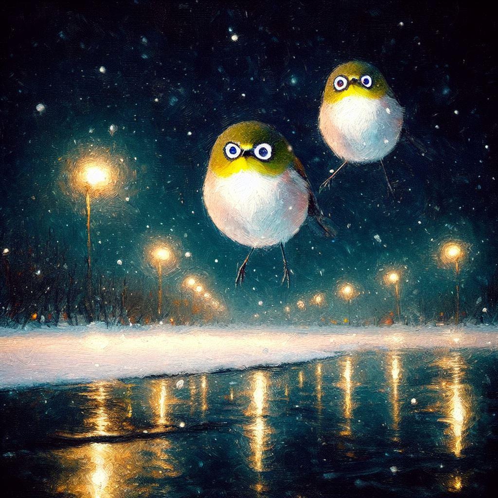 White-eyes in winter night (3)