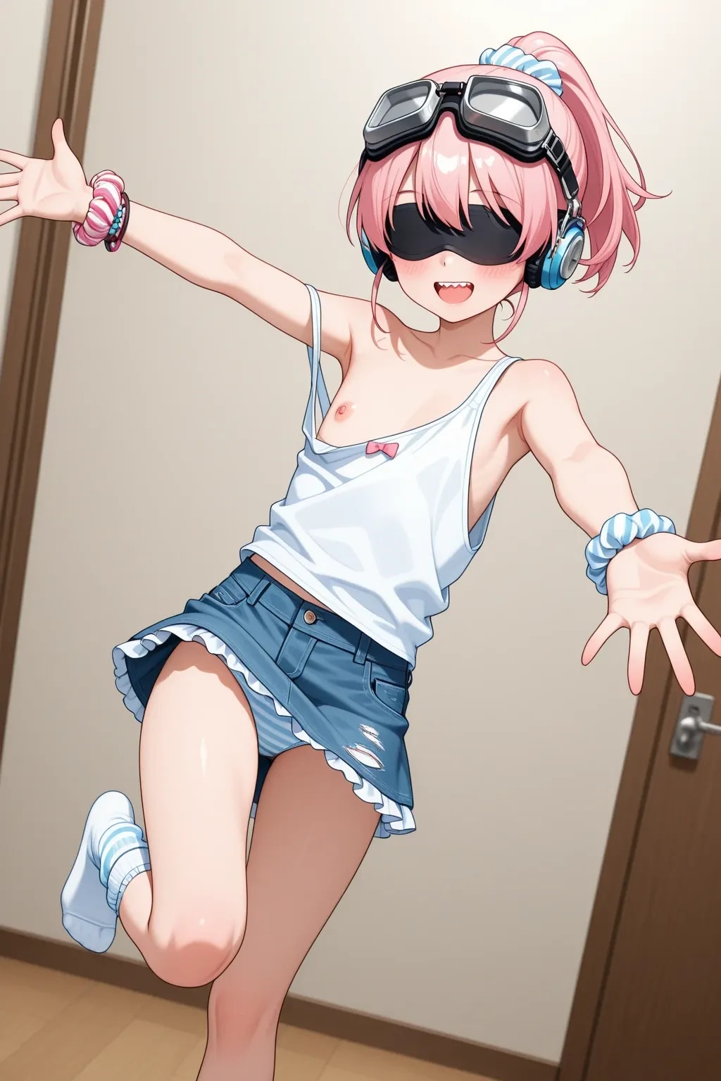ゴーグルで見えない状態でポロリさせたかったけど上手くいかず…