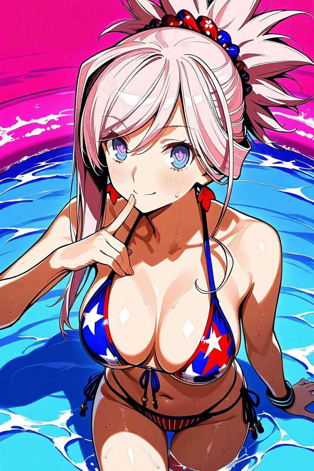 jacket partially removed, heart in eye, burnt clothes, holding fishing rod, kanji, doujin cover, pentagram, tape gag, adjusting headwear, red socks, friends, cloud print, coke-bottle glasses, oral invitation, competition school swimsuit, barbell piercing, gradient legwear, prisoner, blood on breasts, wind chime, carrying over shoulder, tape measure, flaming weapon
